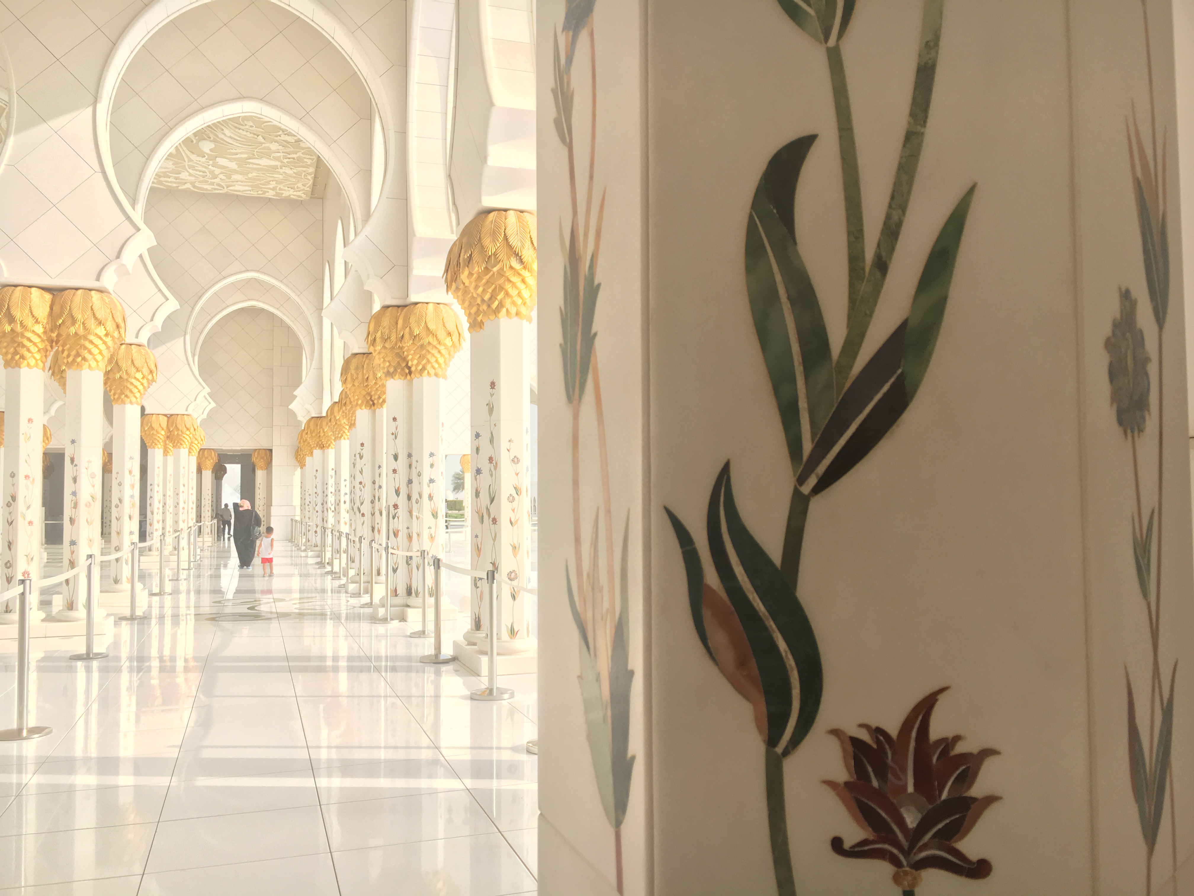 Logo na entrada, quando confirmam seu cadastro, as mulheres devem entrar em uma salinha onde te dao uma capa para colocar em cima da roupa. Em seguida você sobre em uma carrinho elétrico que te leva até a entrada da mesquita.