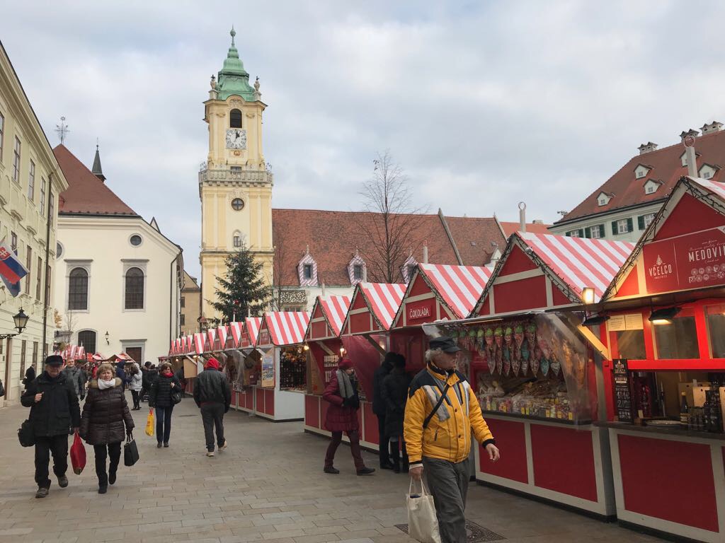 Se estiver visitando Bratislava em Dezembro nao deixe de visitar o mercado de Natal que fica em plena praça central e além de uma árvore de natal linda tem comidinhas deliciosas.
