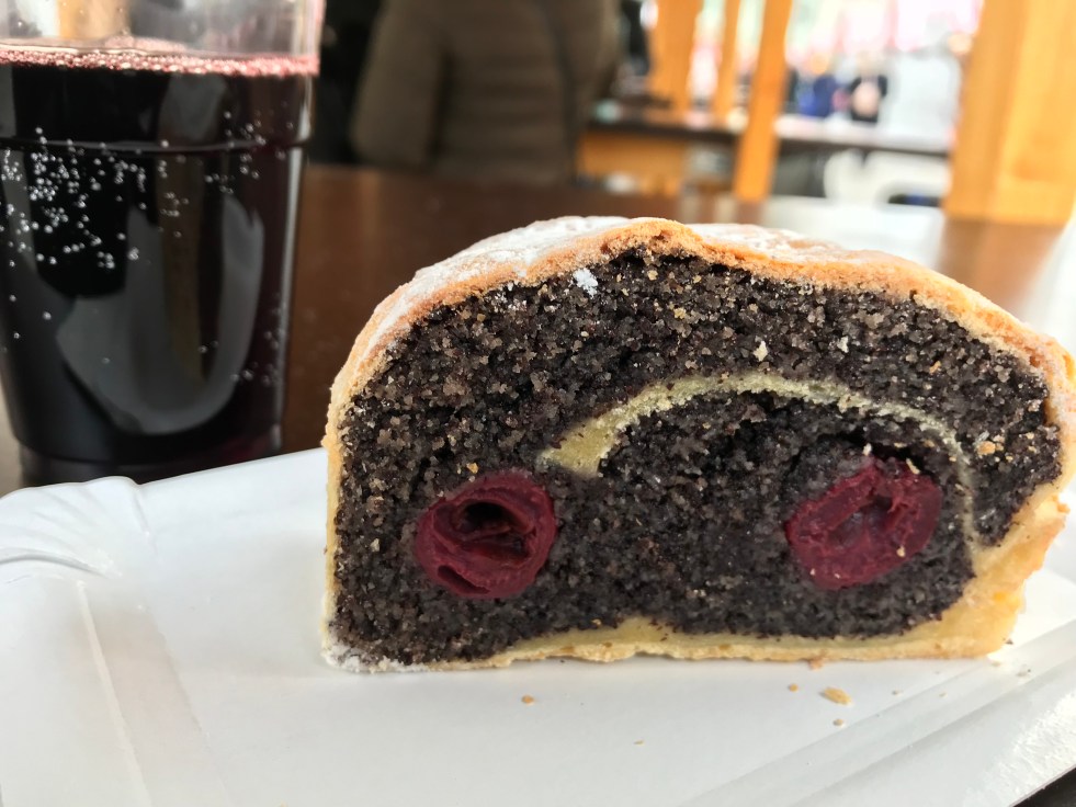 Os paes doces cobertos ou recheados de sementes de papoula mescladas com mel sao super típicos da Bratislava. Você os verá por todos os lugares e especialmente nos mercados de natal, além de muitas cerejas.