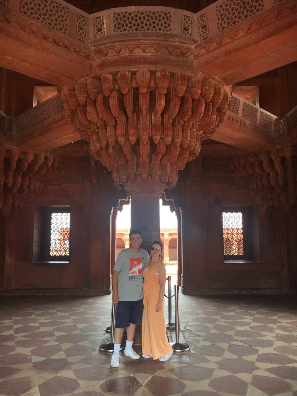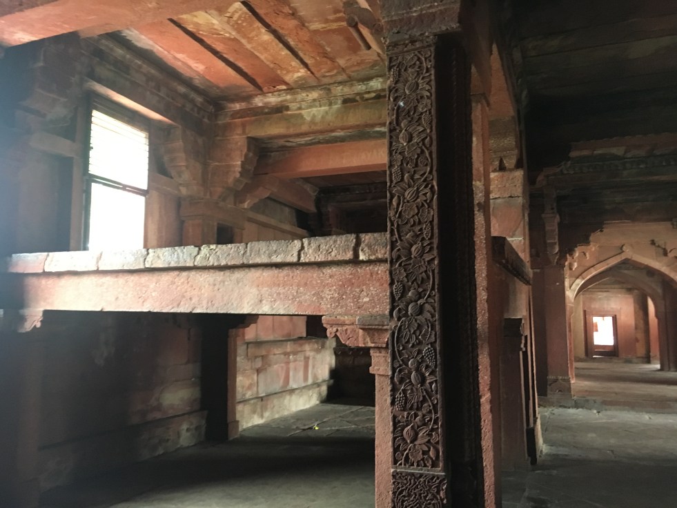 Diwan-i-KhasA sala de audiências privadas Diwan-i-Khas é outro destaque. A forma com que ele falava com seus conselheiros é bem curiosa: ele se sentava no alto de uma coluna central da qual saiam quatro pontes que chegam a cada uma das quatro esquinas do edifício, onde se sentavam seus conselheiros. Incrível a altura em que se sentavam.