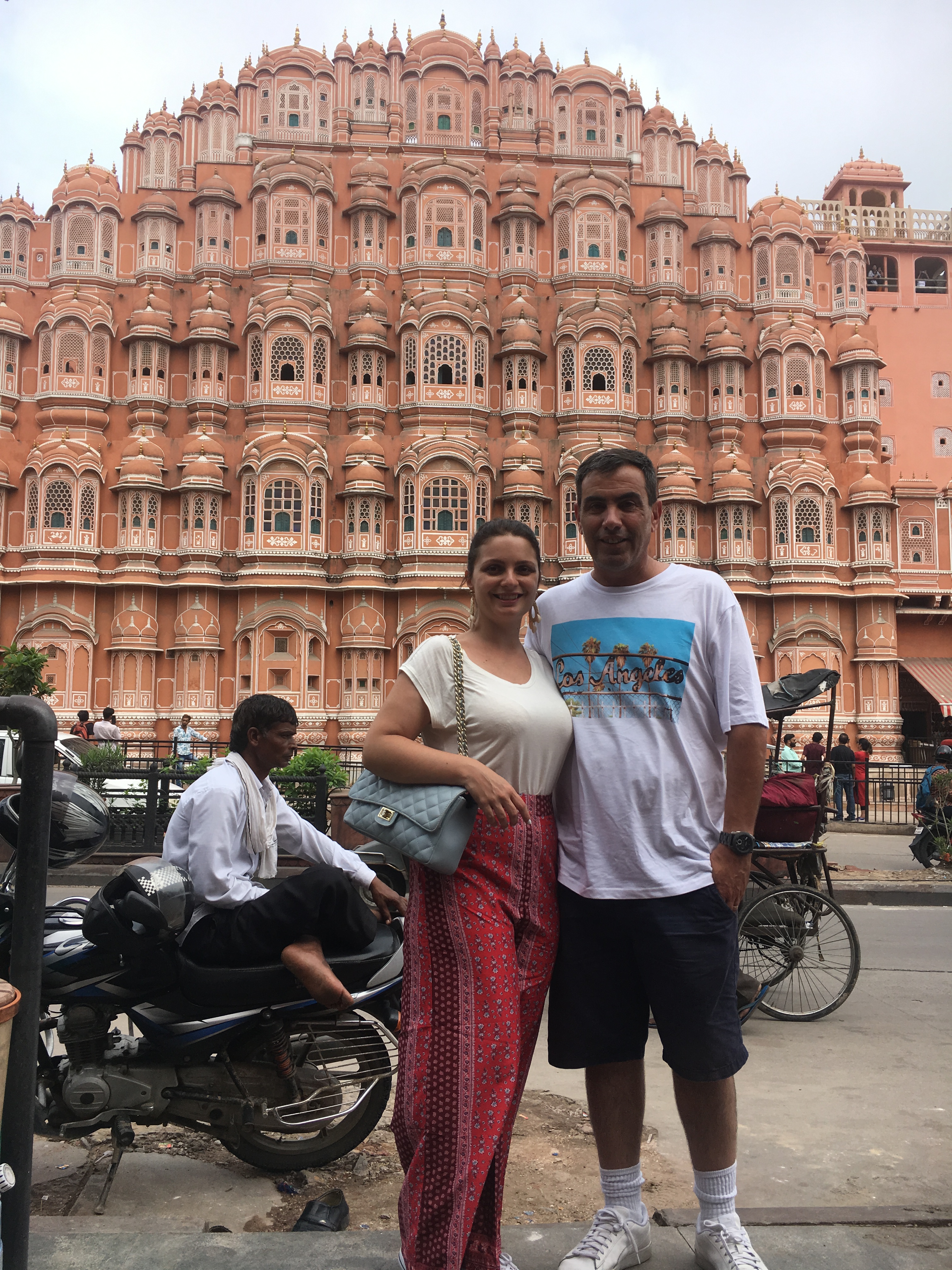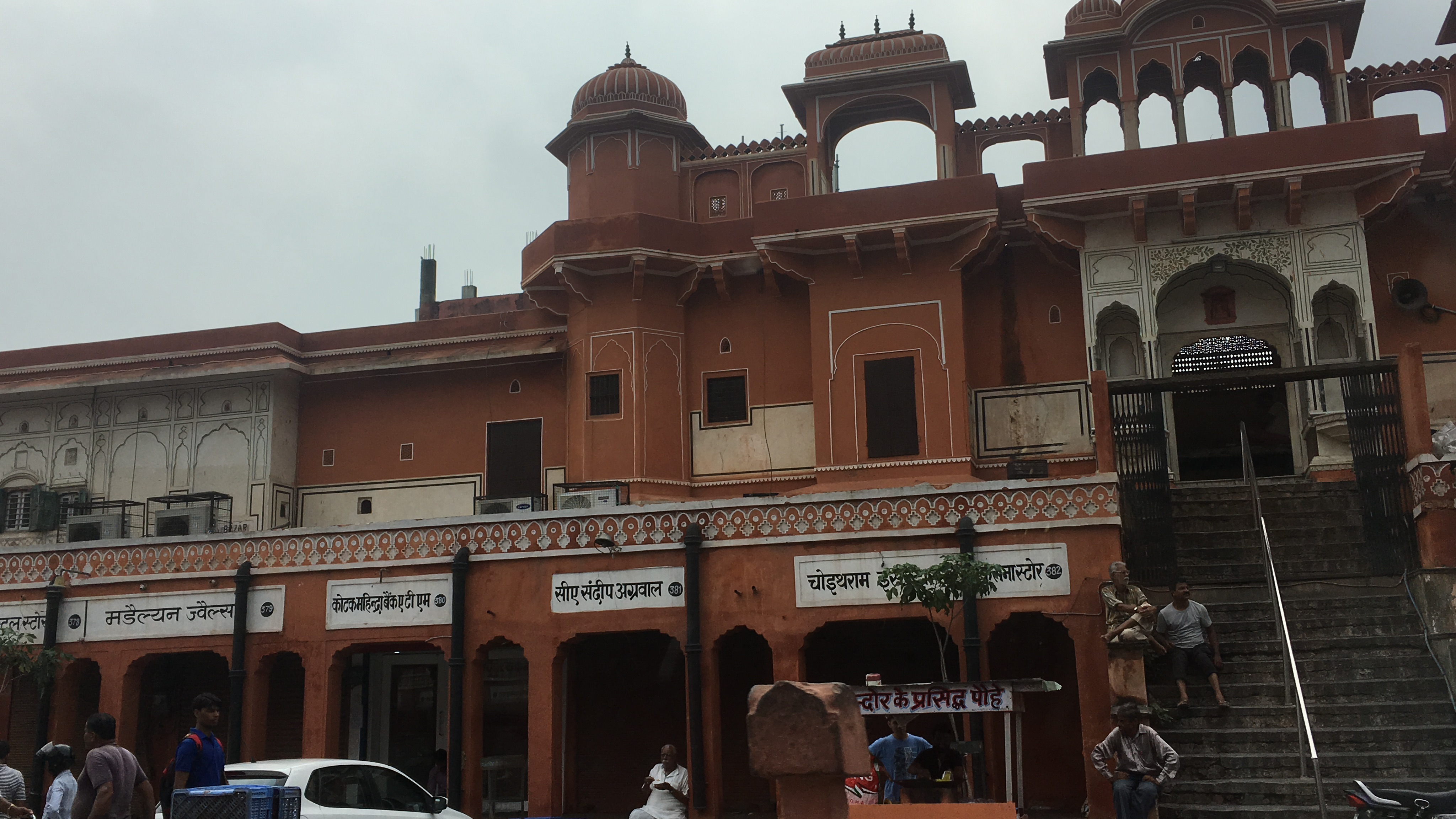 Nossa primeira parada foi no Palácio dos Ventos, um antigo palácio, conectado ao City Palace e ao Observatório Jantar Mantar, construído em 1799, como uma extensao do harém. Ele permitia que as mulheres reais observassem a cidade através das pequenas janelinhas sem serem vistas. Ele é uma fachada construída na forma da cauda do pavao real que é símbolo da realeza indiana.