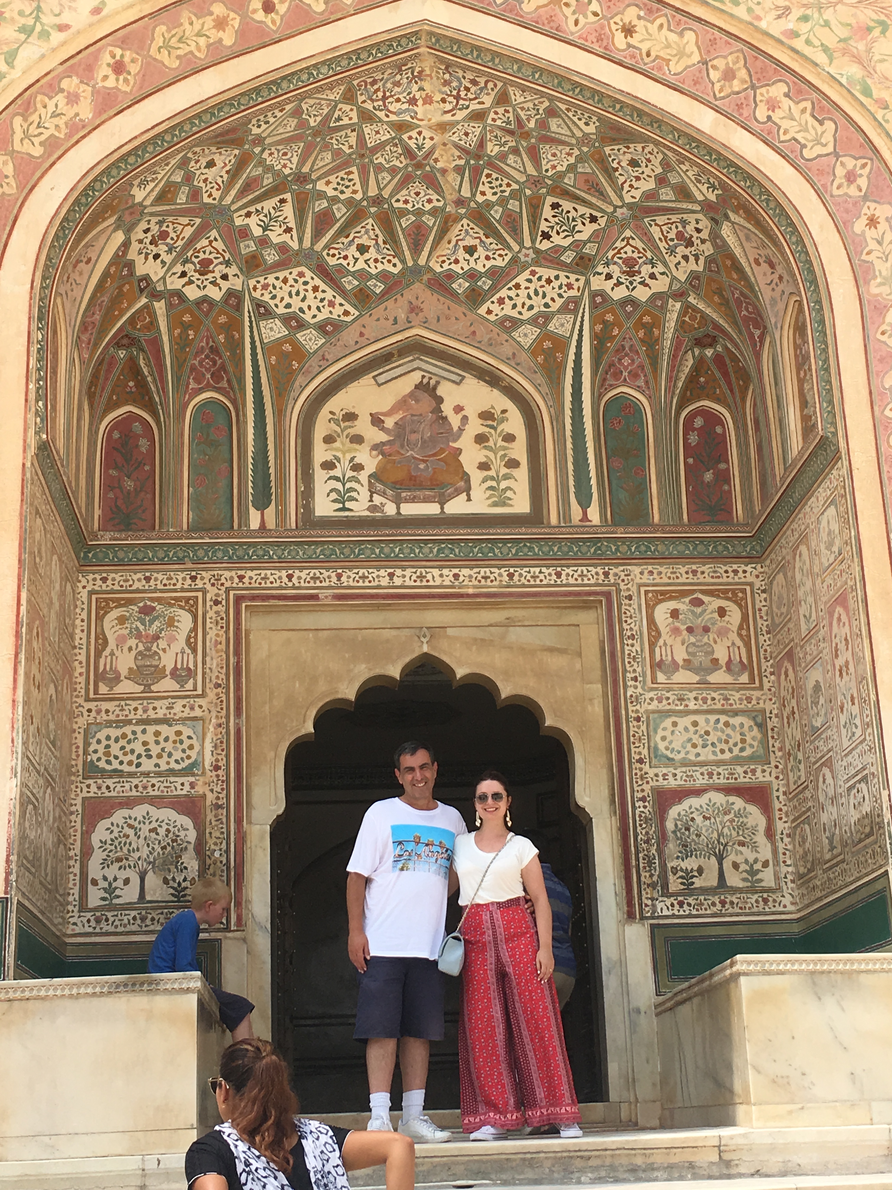 Na sequência fomos visitar o Forte de Amber, que construído em 1592, foi o lugar que mais gostei da viagem, depois do Taj Mahal em Agra. Ele fica em Amber, a 11 km de Jaipur, e era o complexo palaciano da cidade, que ficava dentro de um forte chamado Jaigarh Fort.