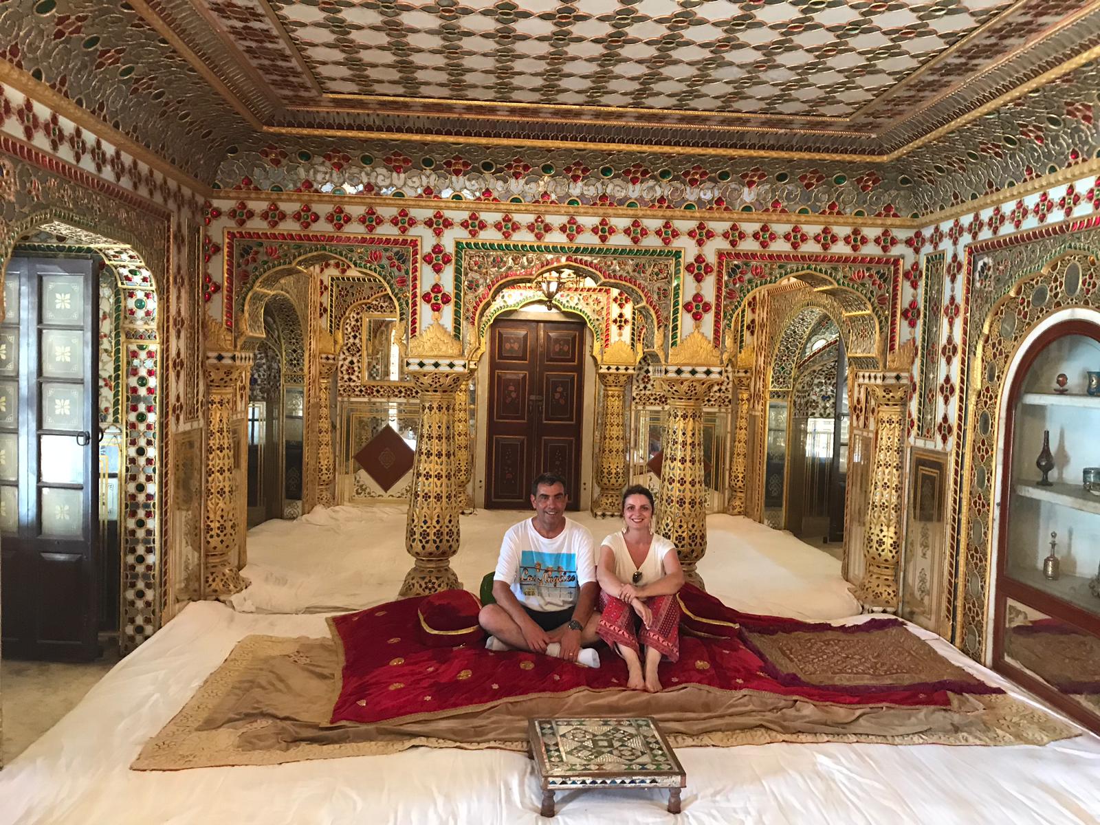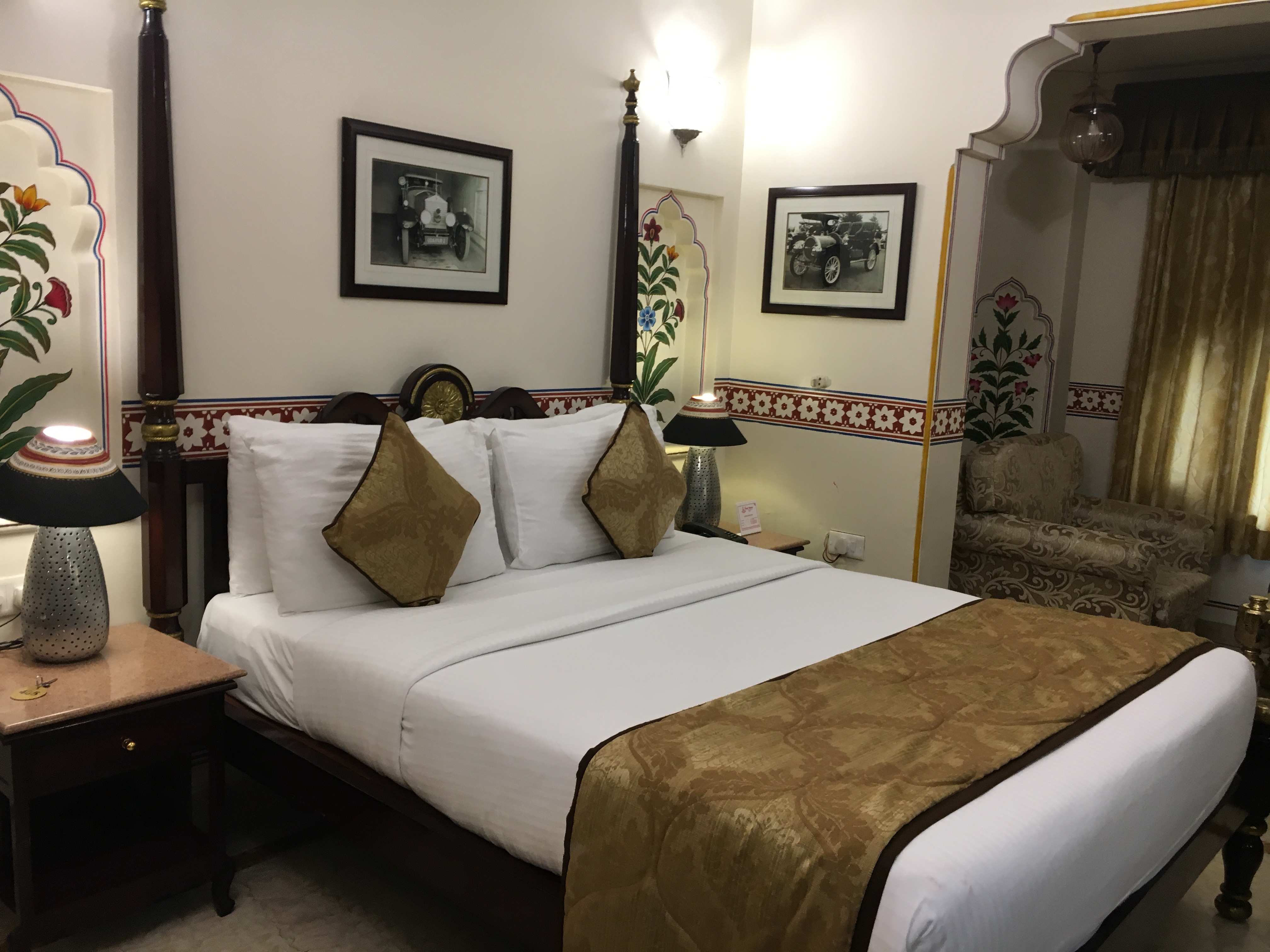 Nós ficamos no excelente Umaid Bhawan Hotel que 4 estrelas e fica em um antigo palácio restaurado em Jaipur com uma decoraçao incrível.