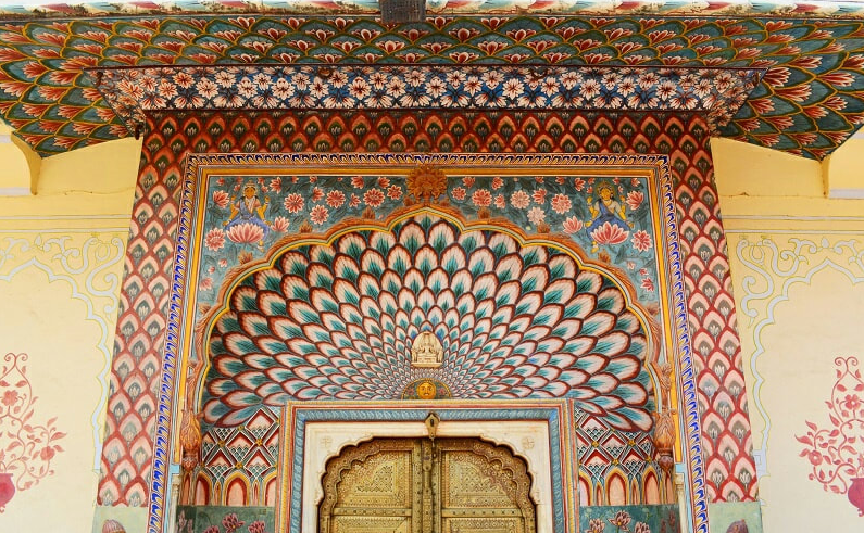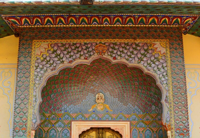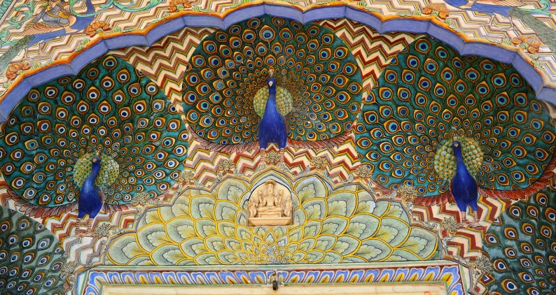 Também na área pública (Pritam Niwas Chowk) o pátio está rodeado por 4 portóes que representam as 4 estaçoes do ano: o portao do Pavao representando o outono, o Portao das Rosas representando o Inverno, o Portao de lotus representando o Verao e o Portao de Leheryia representando a primavera. Um portao mais lindo que o outro e um dos trabalhos mais procurados pelos turistas!