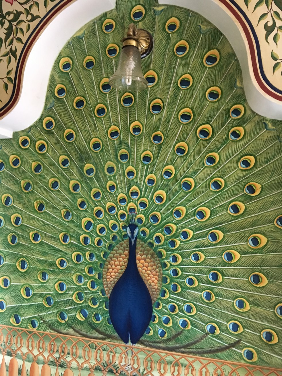 O último e sexto andar chama-se Mukut Mahal ou o Palácio da Coroa de onde se pode ter lindas vistas de Jaipur, dos outros edificios do complexo e dos jardins em que haviam vários pavoes. A coisa mais linda. Nós amamos esse palácio e para mim depois do Forte de Amber (ver post aqui) é a segunda atraçao imperdível de Jaipur.