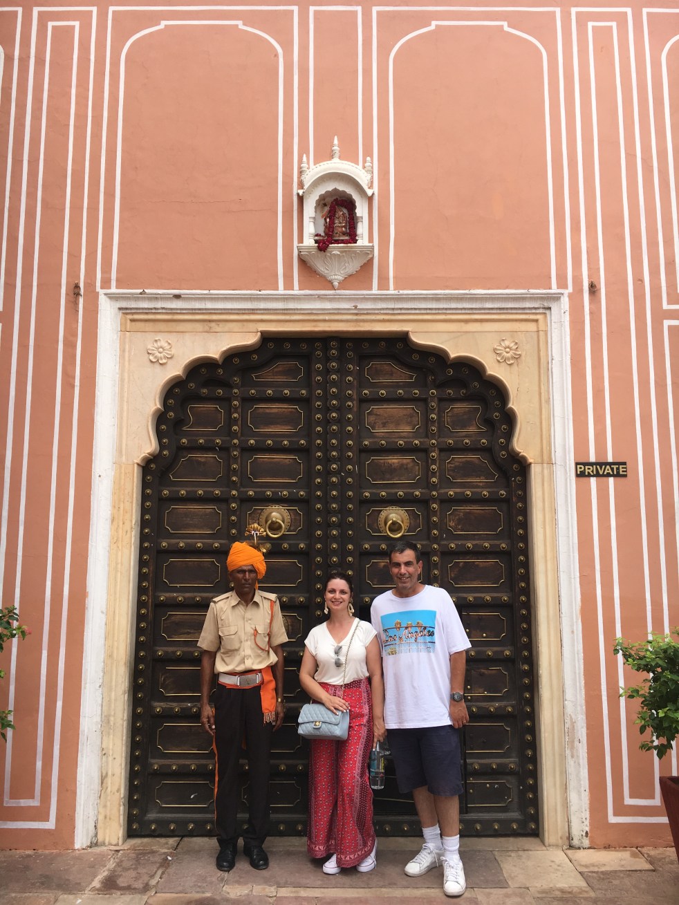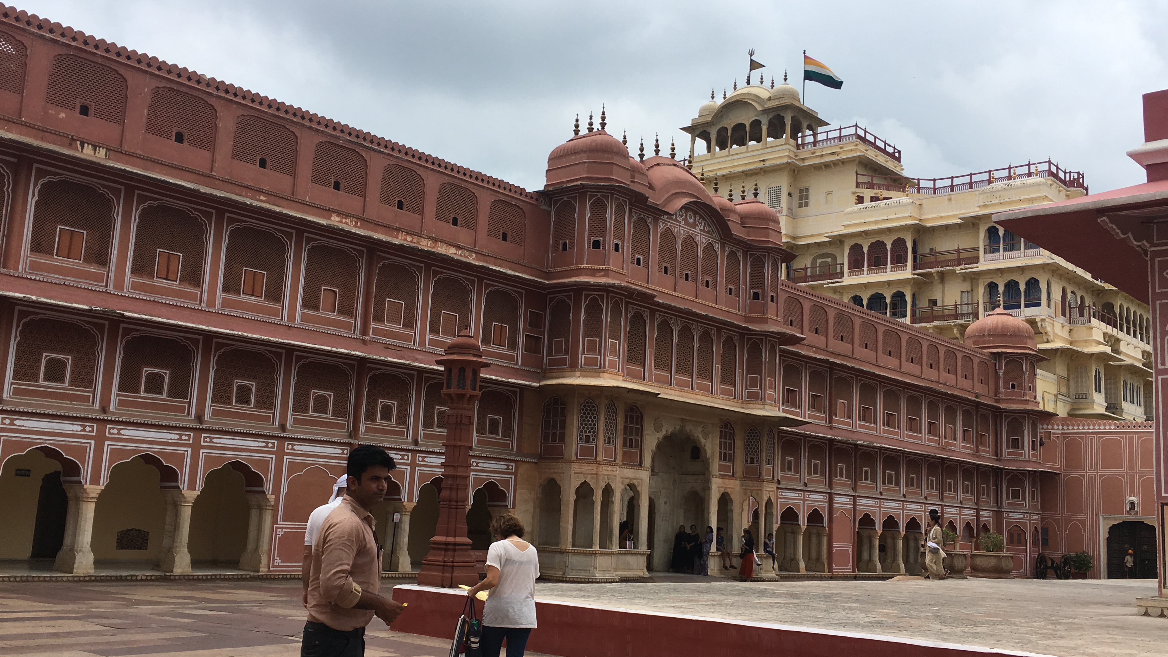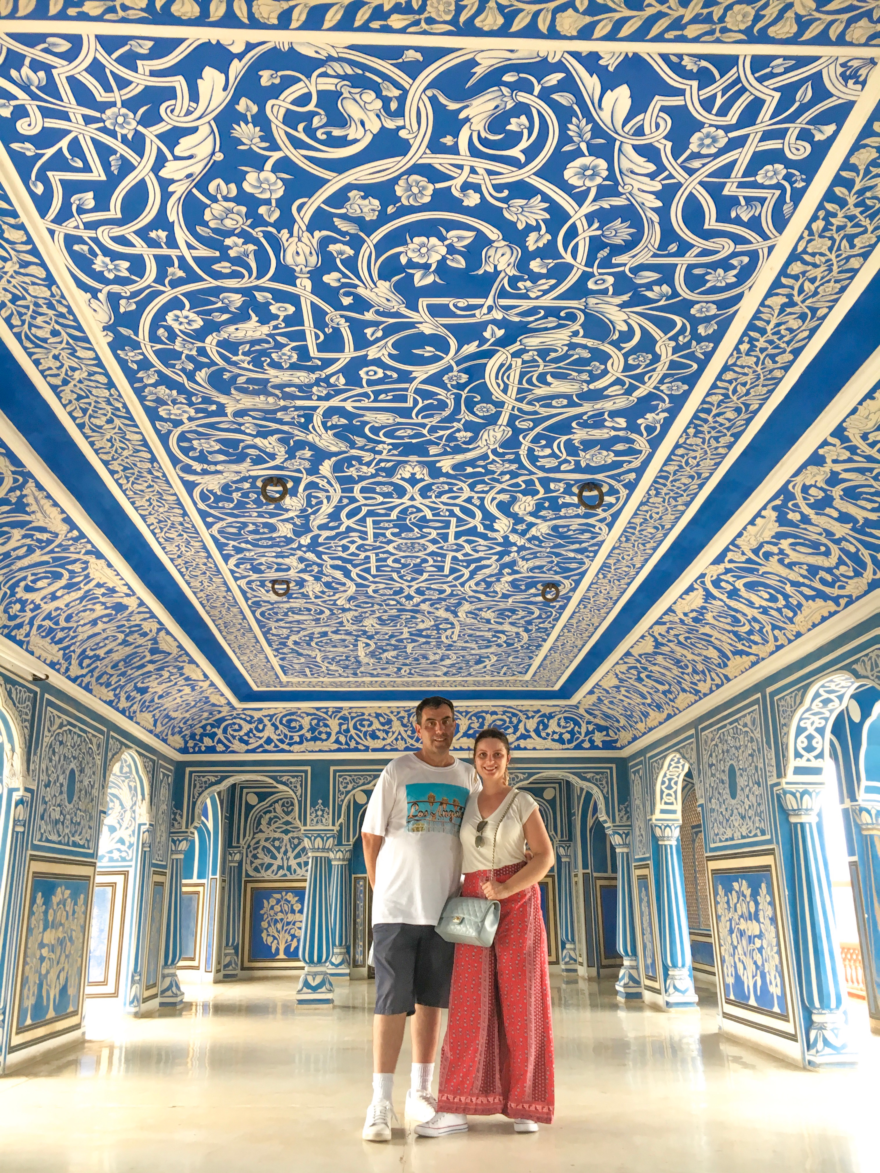 A maior parte do palacio Chandra Mahal é habitado pela família real e cada um dos seus sete andares tem um charme e encanto particulares. Os patios, jardins e várias edificaçoes também podem ser visitadas. Ele é considerado edifício mais importante e mais bonito do complexo. Nós optamos pelo ingresso Royal grandeur tour que custa 2000 INR e que dá acesso a muito mais áreas do palácio que o ingresso normal. Sao mais ou menos 45 minutos de visita e fomos com nosso guia, já contrato junto com nosso motorista.