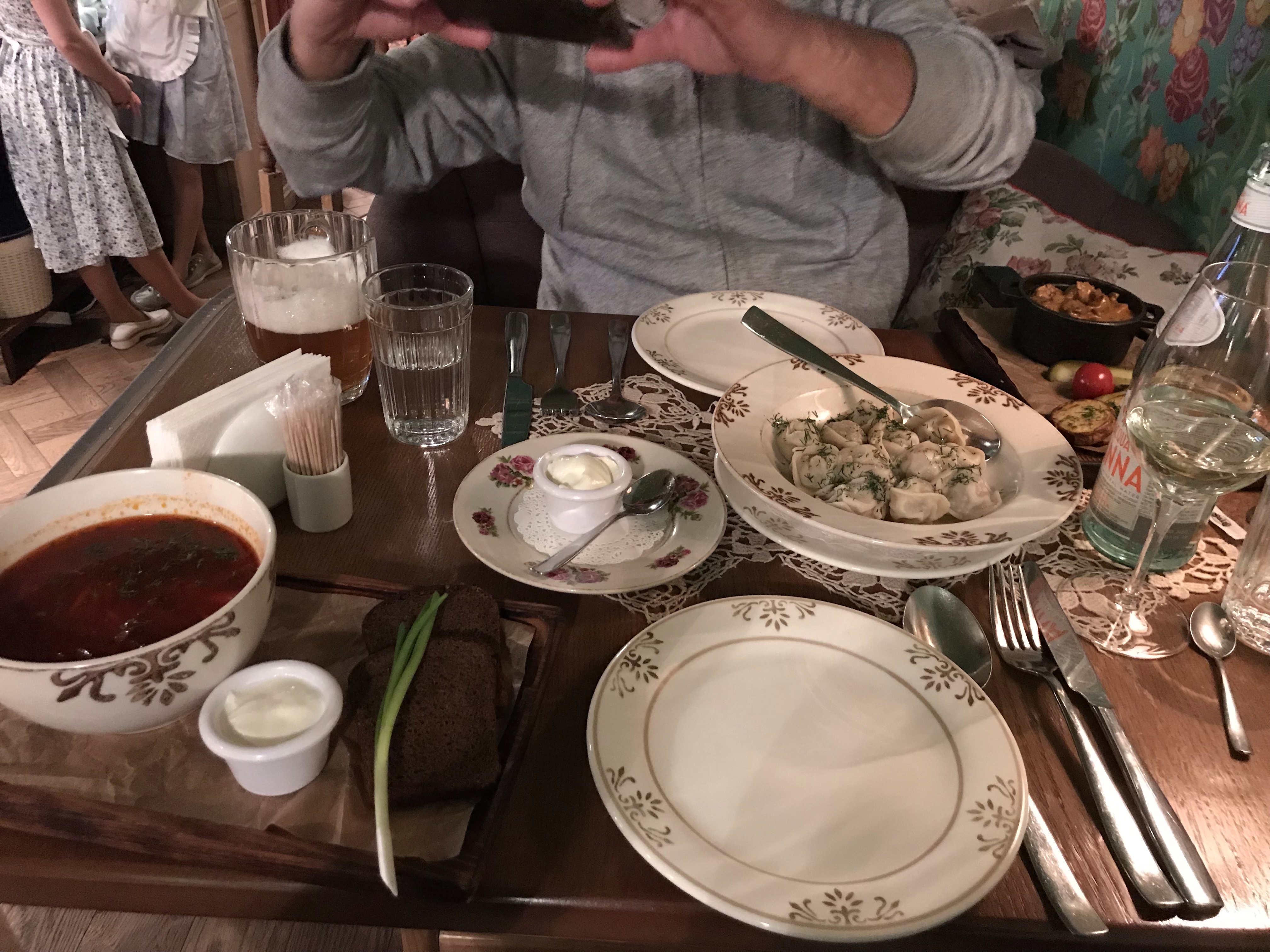 A comida russa, como muitas outras, incluindo pratos famosos da culinária brasileira está inspirada na comida dos camponeses, no caso específico desse país, daqueles que tinham que sobreviver longos e intensos invernos, ou seja, com muito carboidrato e gorduras. Além disso, por conta de vários conflitos, há muita imigração georgiana o que também influenciou muito a comida russa. Se estiver por lá, recomendo ao menos ir a um restaurante georgiano e provar Amamos todos e deixo abaixo alguns dos nossos preferidos, com os nomes em russo, já que muitos lugares não tem cardápio em Inglês: