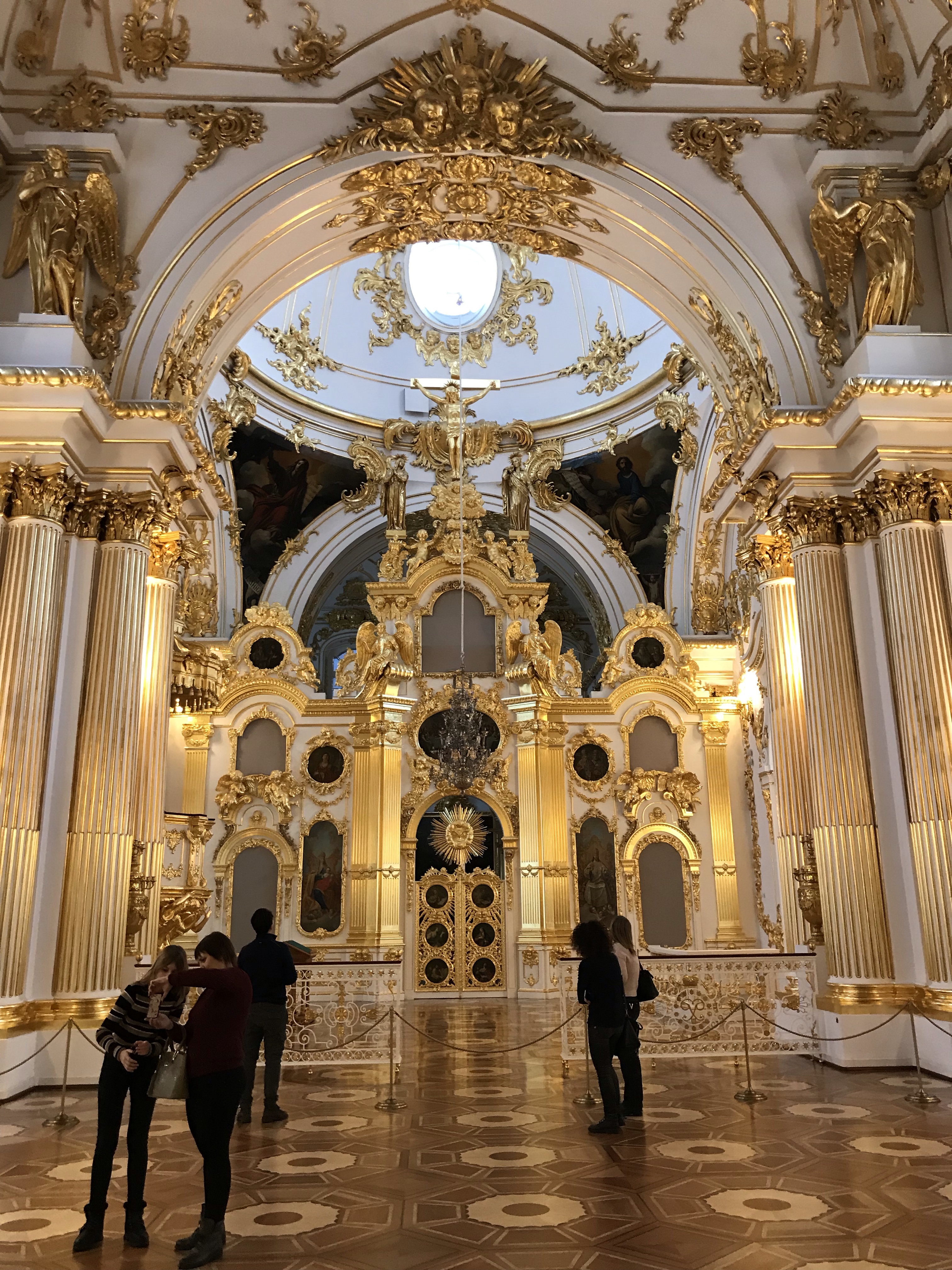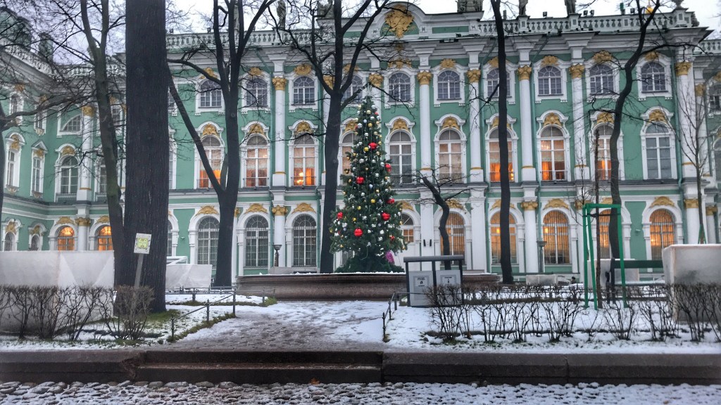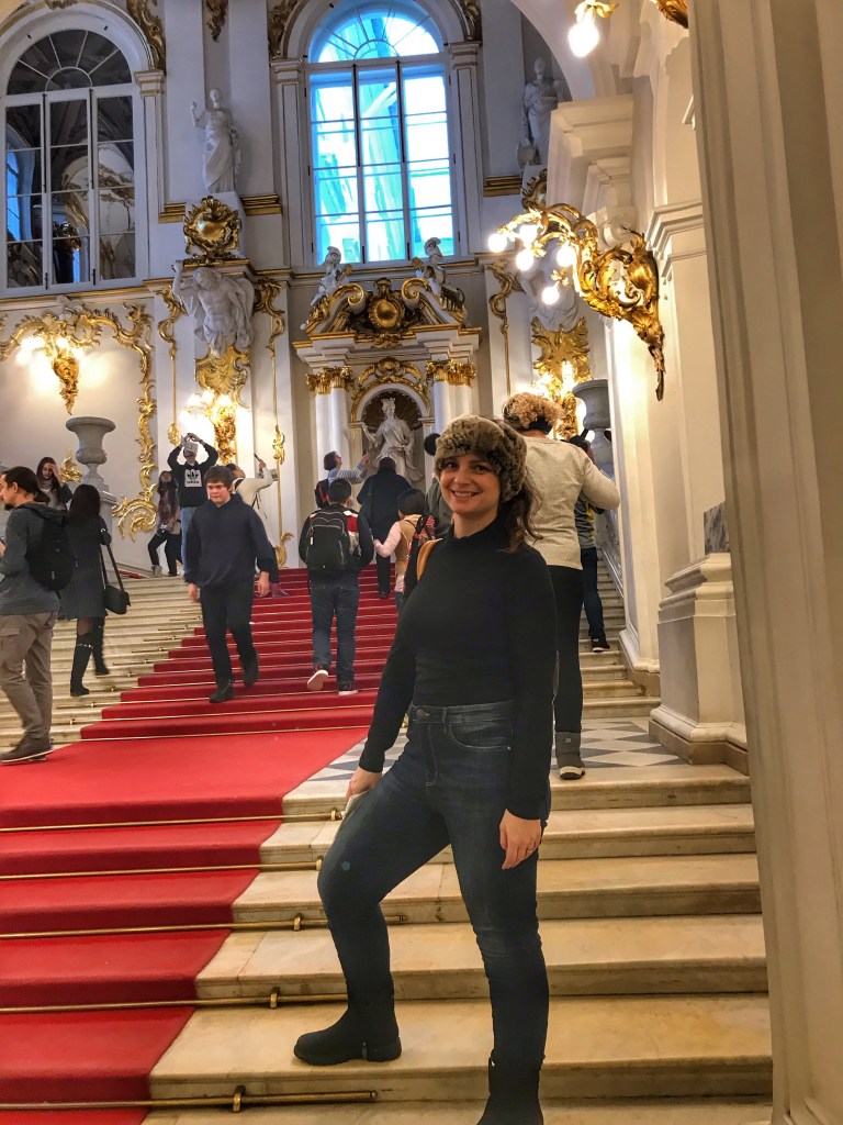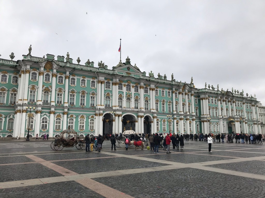Dos seis edifícios que formam o complexo do museu estão: o Palácio de Inverno, o Pequeno Hermitage, o Antigo Hermitage, o Novo Hermitage e o Teatro Hermitage. Uma dica é que o museu é grátis na primeira quinta-feira de cada mês e chegamos justo nesse dia! Mas como já tínhamos ingresso para o dia seguinte desistimos de encarar a fila.
