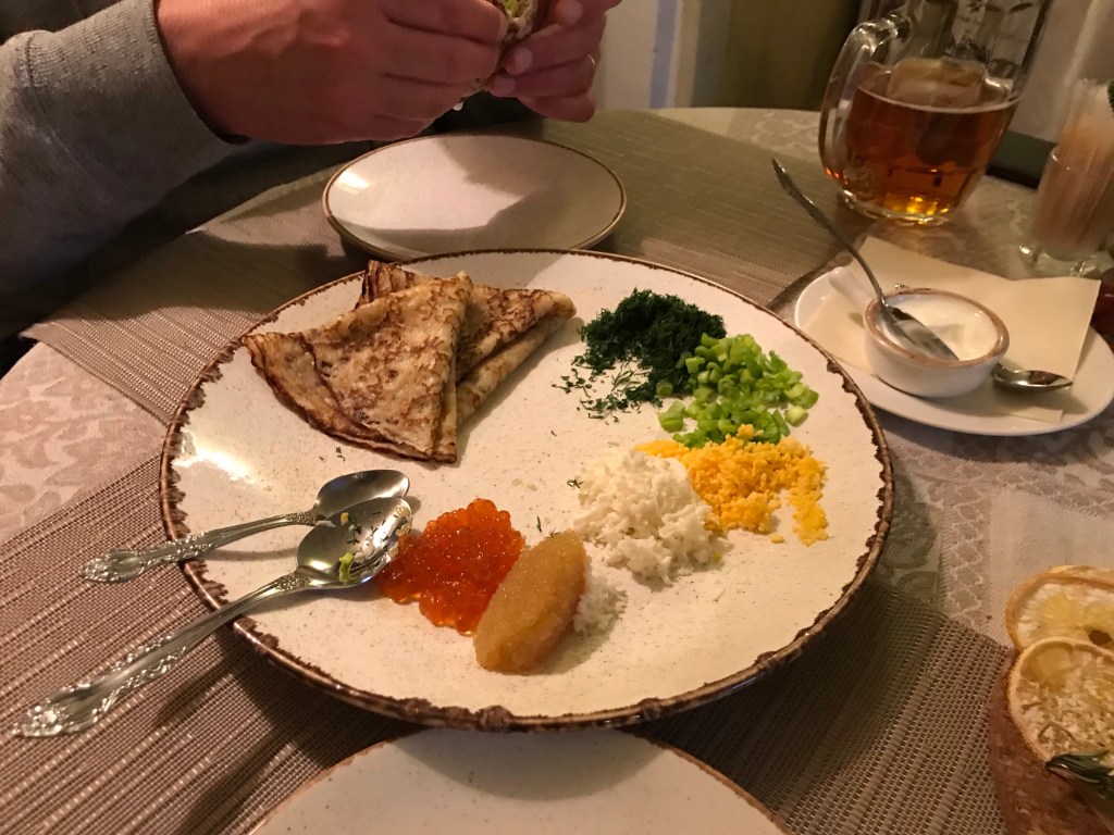 Na saída voltamos sentido nosso hotel e almoçamos em um restaurante fantástico de comida russa, o Yat.