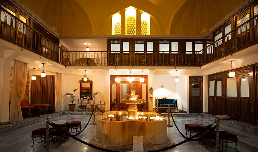 Fonte: cagalogluhamami.com.trPassamos novamente pela área de descanso e ao final dele, abrimos uma porta de madeira pesadíssima com uma maçaneta de ferro em formato de círculo. Essa porta protege o ambiente do banho que é quentinho e cheio de vapor.