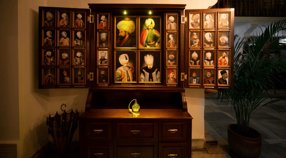 Eu fiquei nessa espreguçadeira no fundo à esquerda. Fonte: cagalogluhamami.com.tr