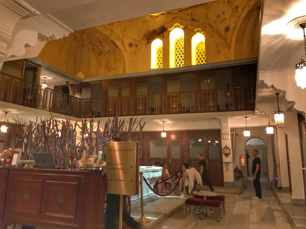Não se sabe ao certo a origem do banho turco, mas sabe-se que já eram usados em Roma e na Grécia e há muito tempo no Oriente. O Hamman Cagaloglu foi construído em 1741 como um hamman público inicialmente para gerar renda para a biblioteca da Hagia Sofia e é um dos mais bem sucedidos de Istambul. Nós já tínhamos feito um hamman no Marrocos antes e adoramos a experiência!