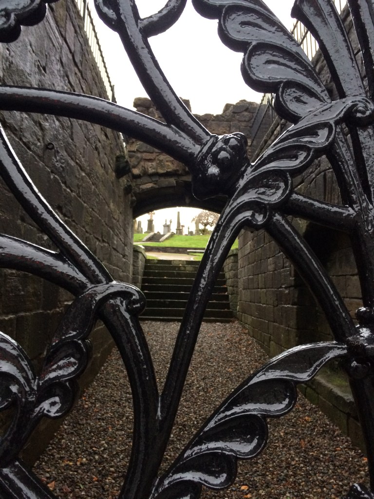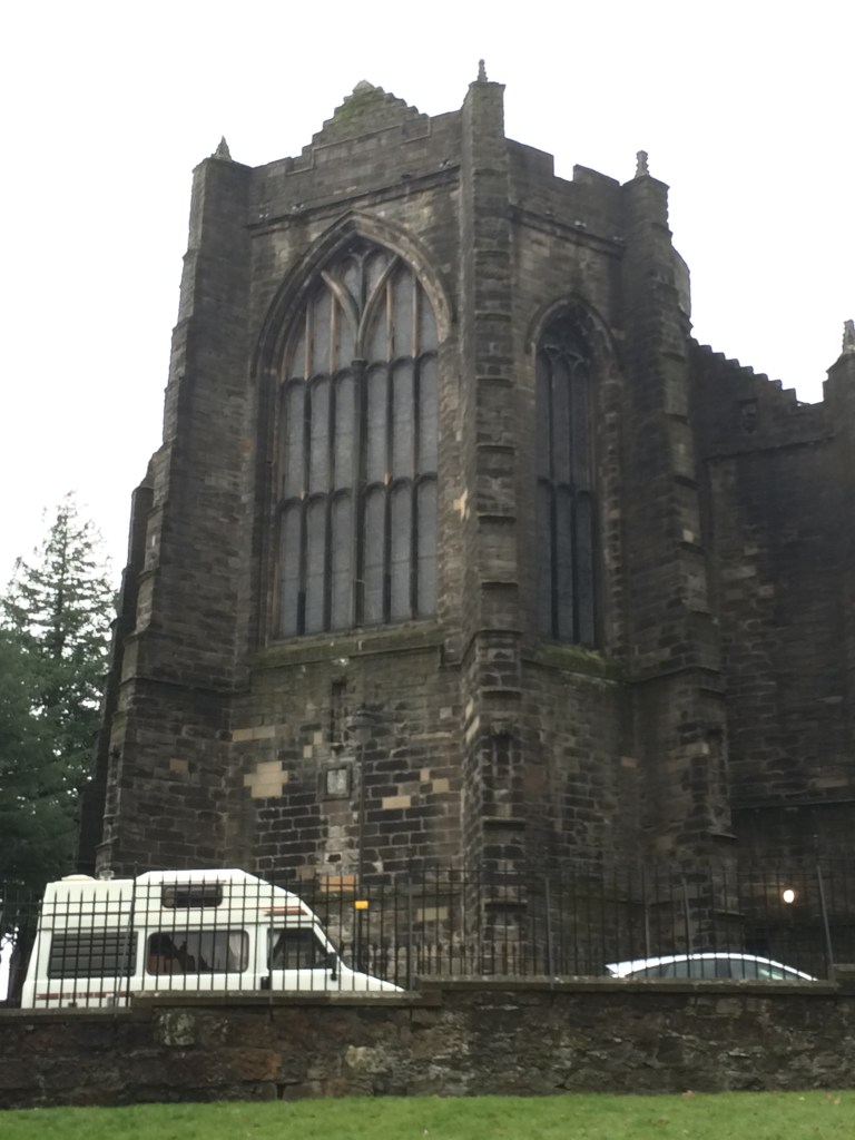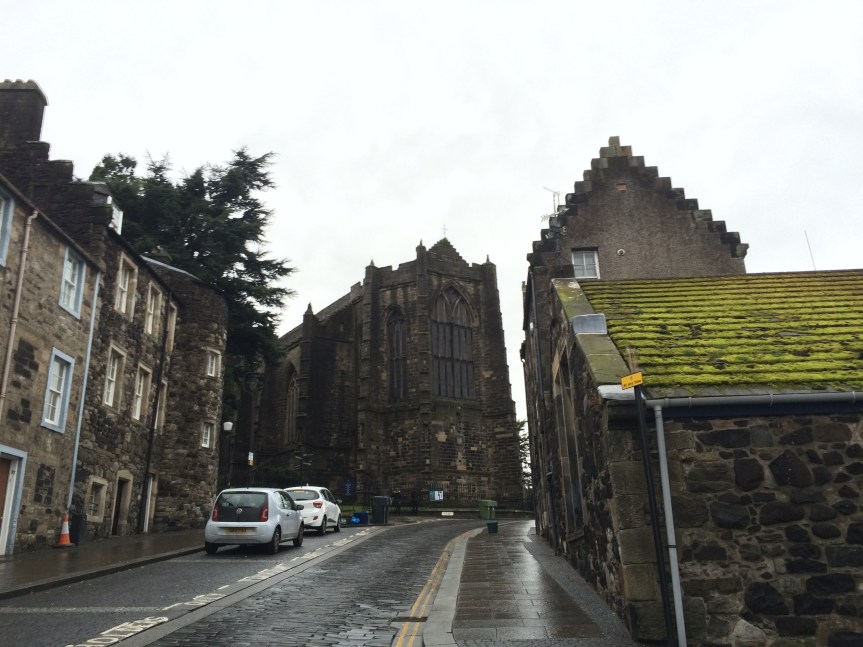 Na volta do Castelo, baixando a colina em direção à Old Town, depois de passar pelo antigo Palácio de Mark Wark, paramos na Igreja Holy Rude fundada em 1129. é o segundo edifício mais antigo de Stirling, depois do Castelo, onde aconteceu a cerimônia de coroação do filho da Rainha Mary Stuart, Jacob VI, que também foi Rei da Inglaterra, com a união das duas coroas.