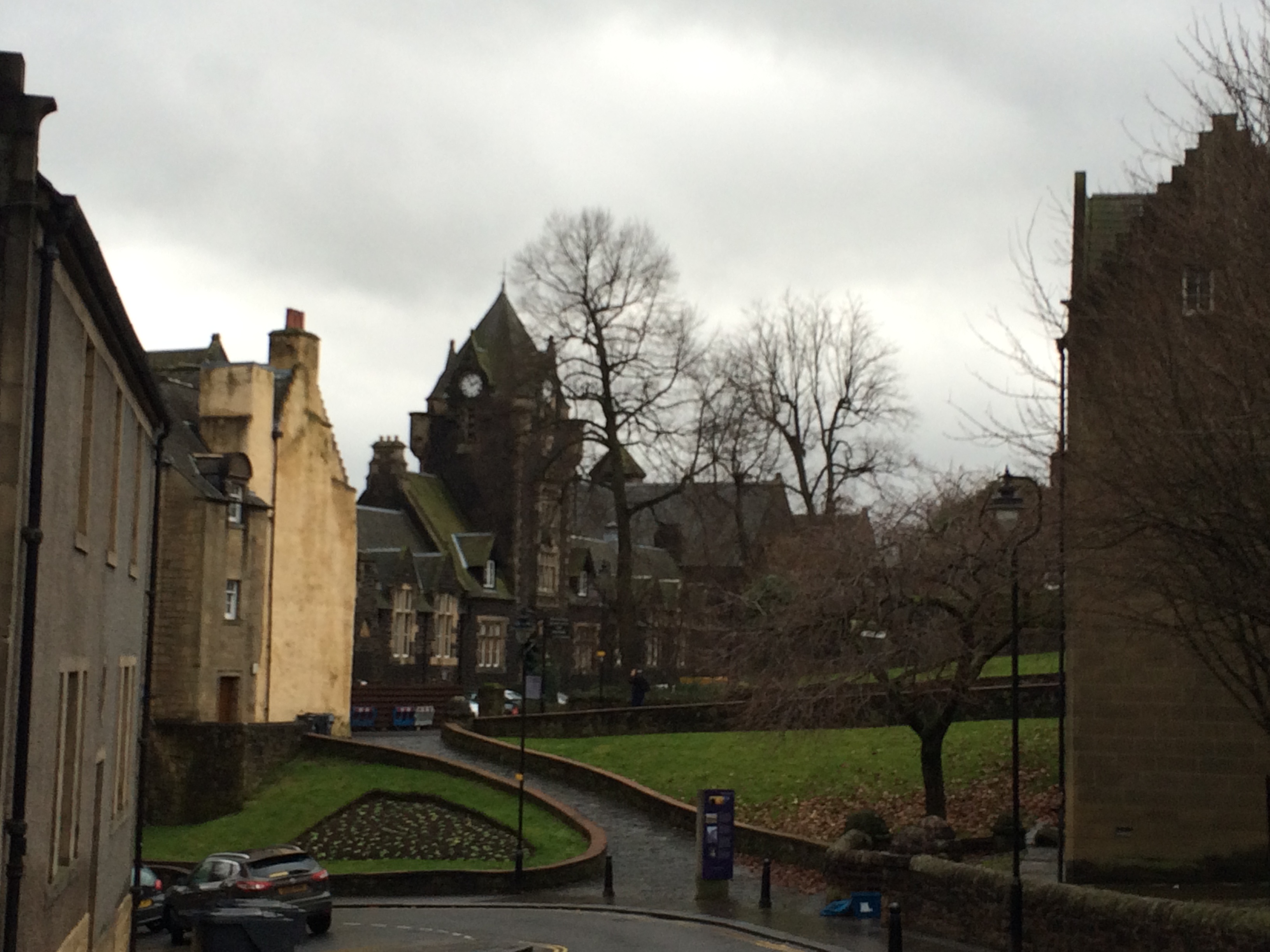 Na volta do Castelo, baixando a colina em direção à Old Town, depois de passar pelo antigo Palácio de Mark Wark, paramos na Igreja Holy Rude fundada em 1129. é o segundo edifício mais antigo de Stirling, depois do Castelo, onde aconteceu a cerimônia de coroação do filho da Rainha Mary Stuart, Jacob VI, que também foi Rei da Inglaterra, com a união das duas coroas.