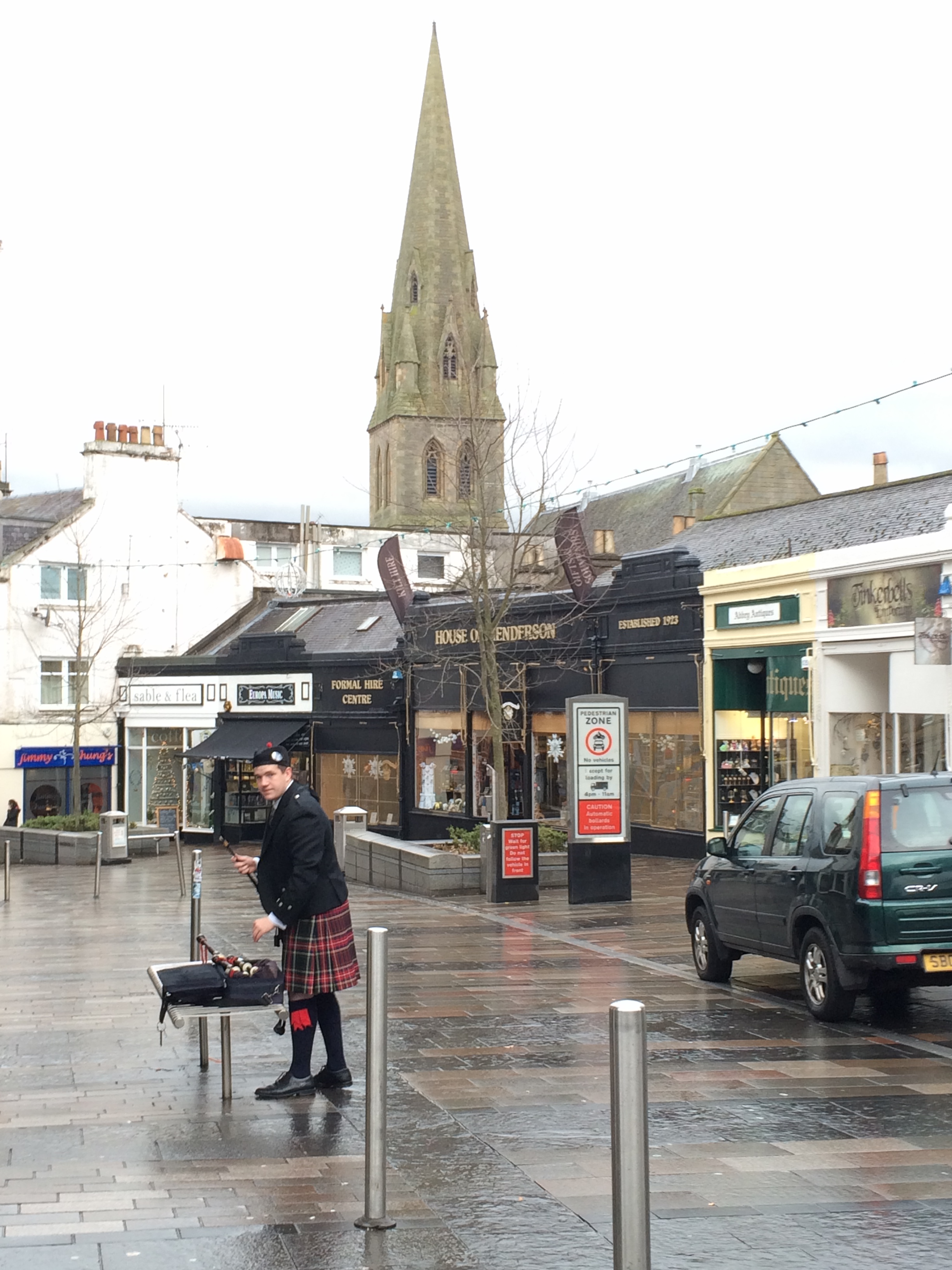 Bem na pracinha central está a Mercat Cross, uma coluna coroada com um unicórnio que no passado indicava que a cidade tinha permissão do rei para ter um mercado e fazer comércio.