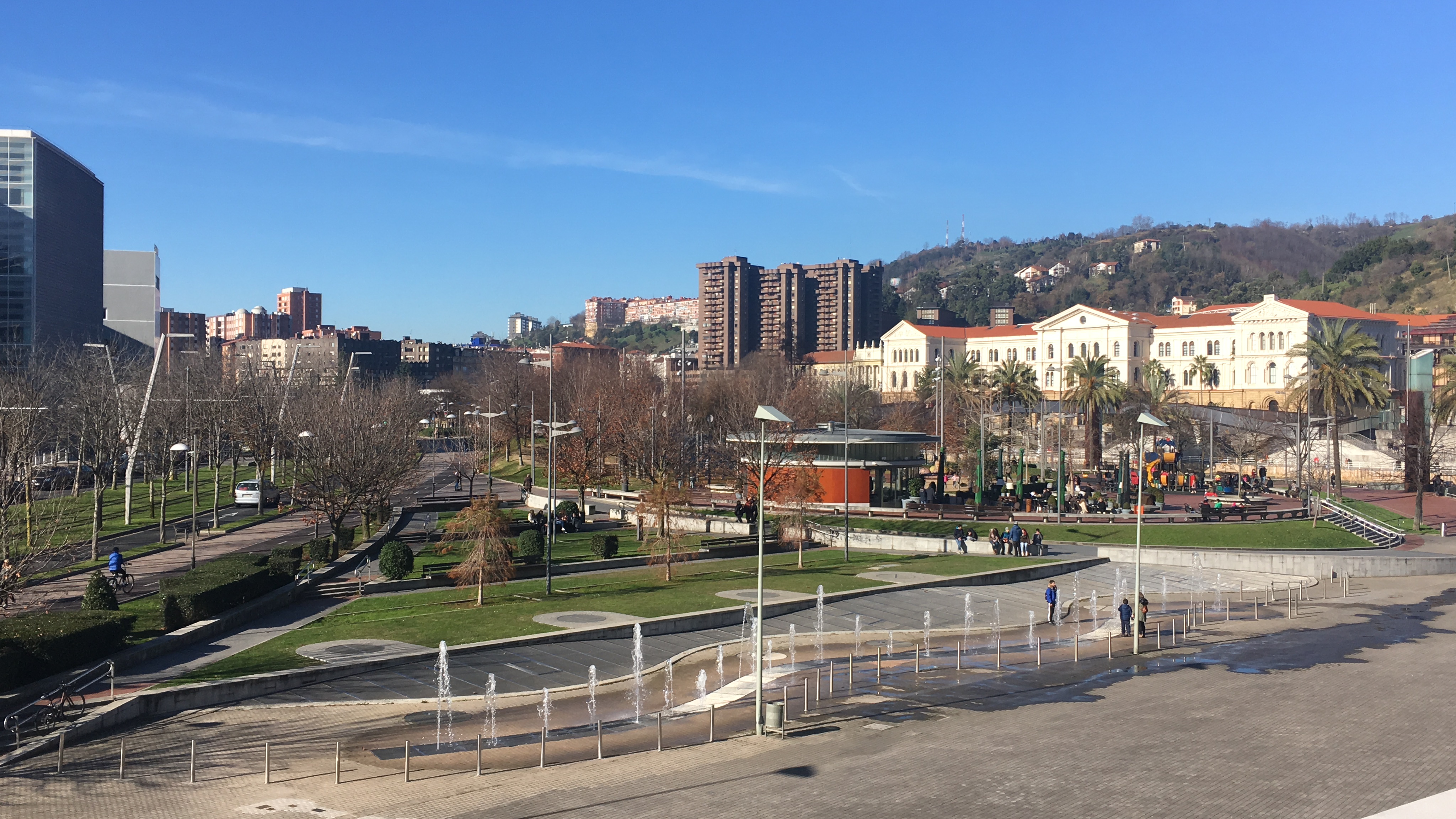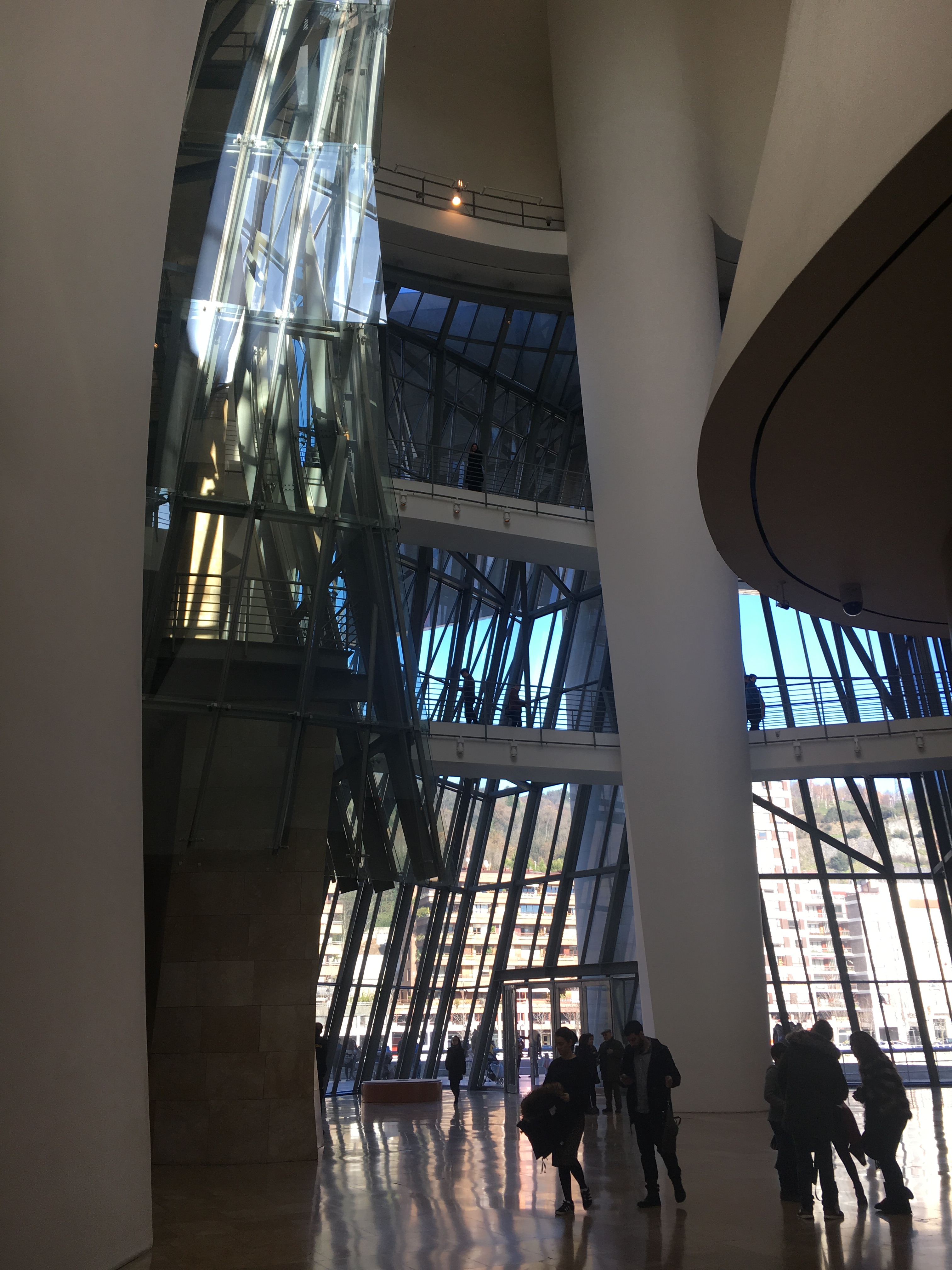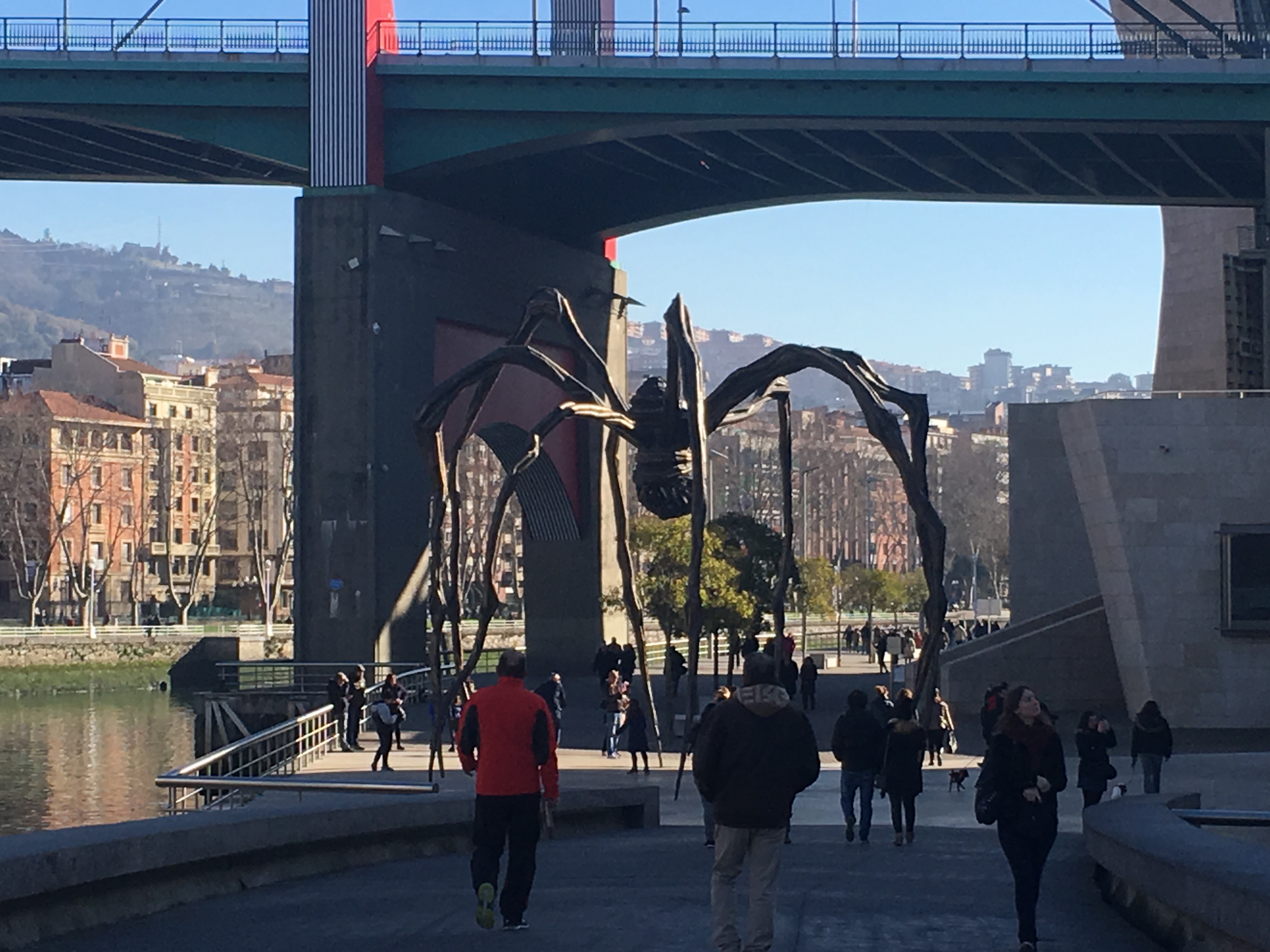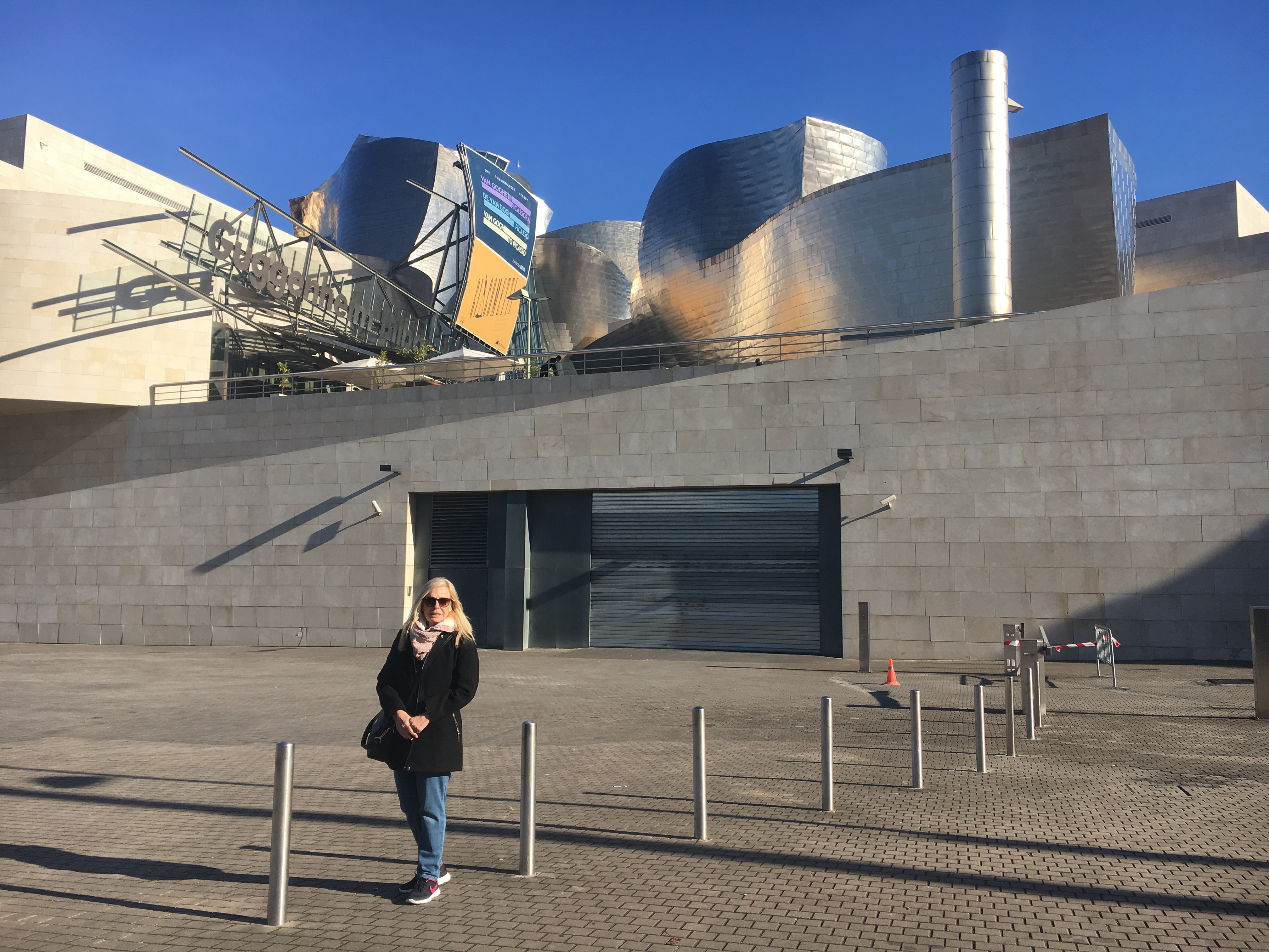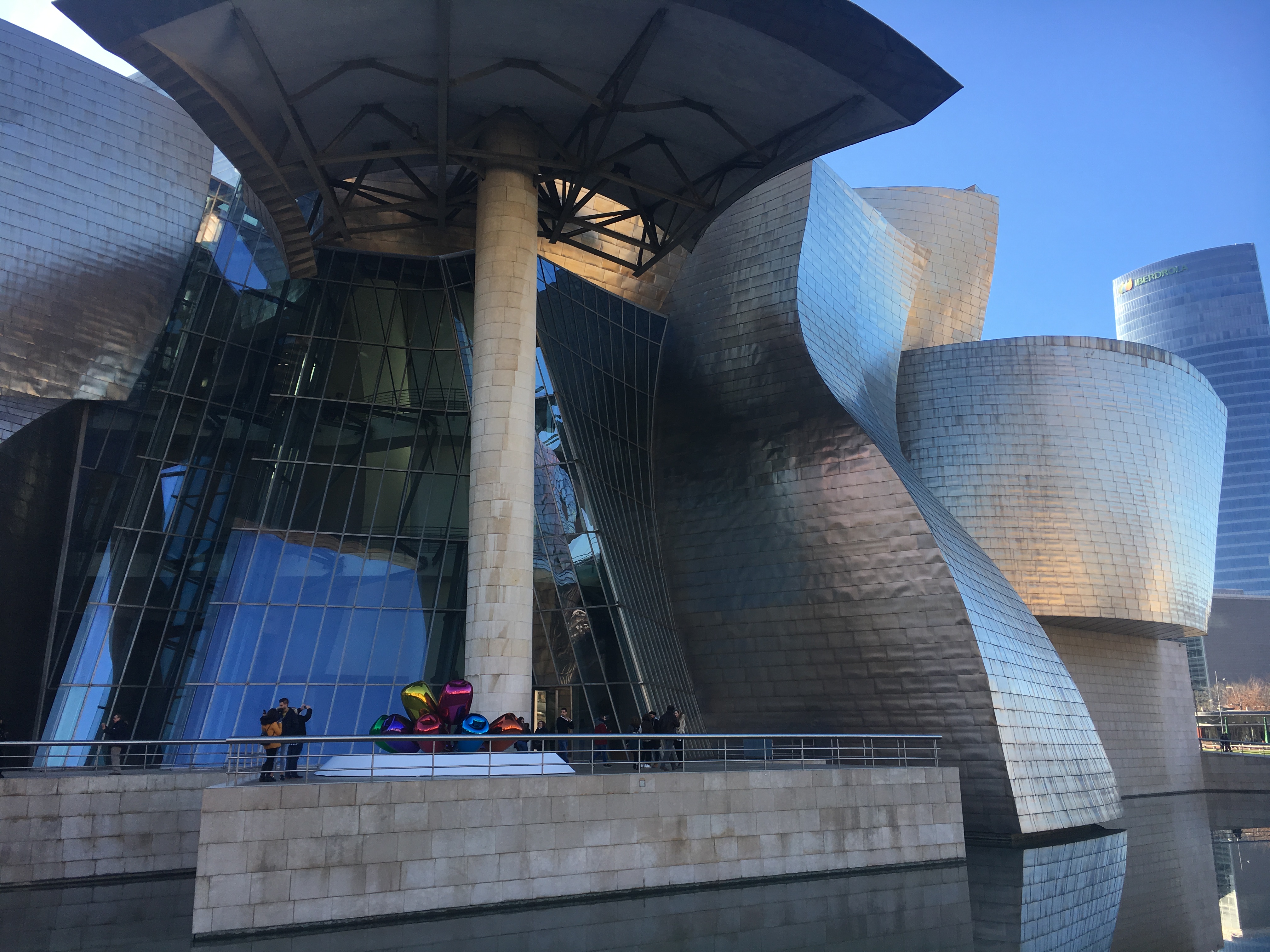 Começamos nosso passeio pelo Museu Guggenheim onde encontramos, por sorte, vaga para estacionar na rua com parquímetro. O Museu Guggenheim é o símbolo da transformaçao da cidade, da “Nova Bilbao”, que começou a ocorrer no final do século XX, por conta da Revoluçao Industrial.