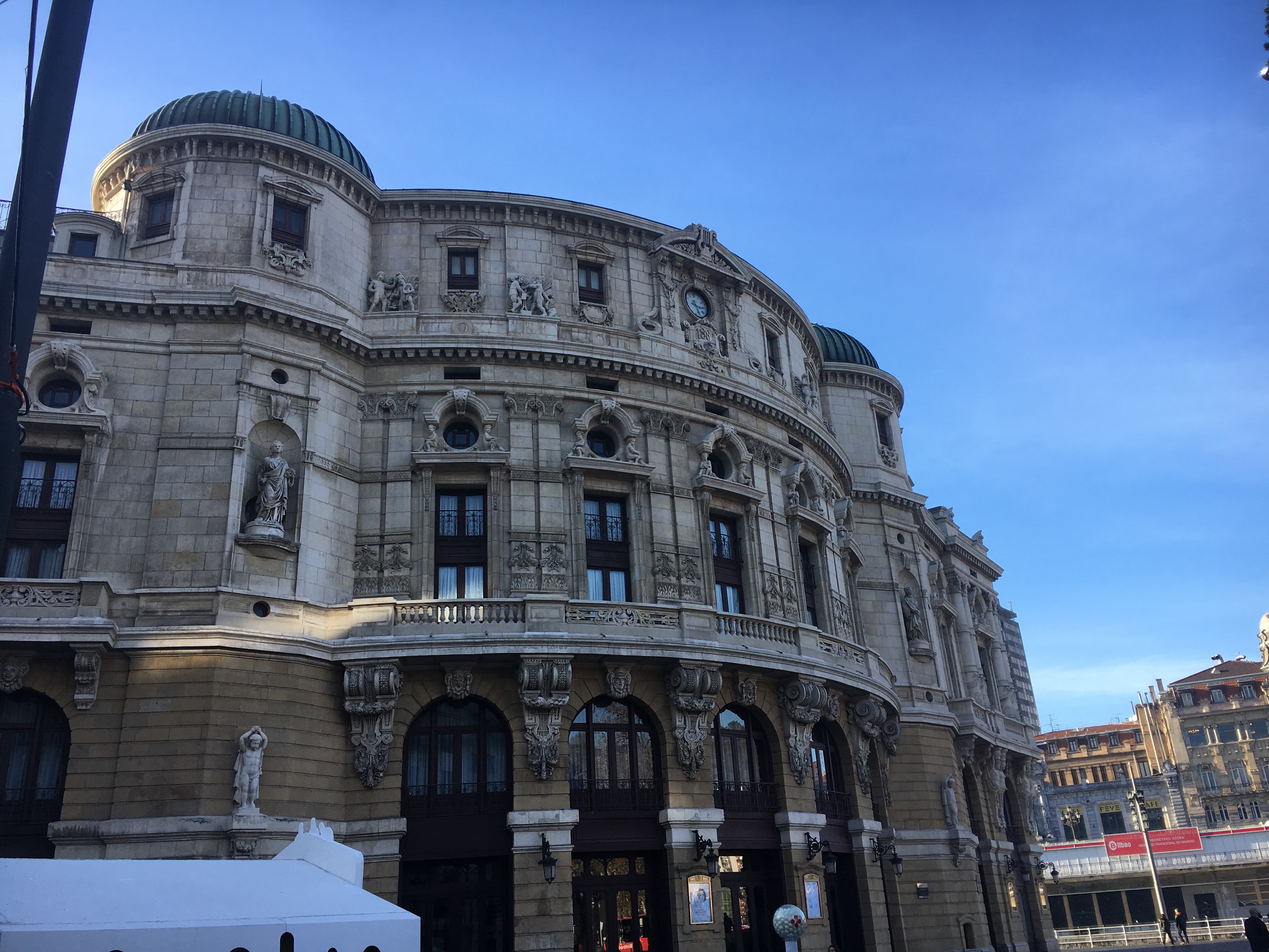 Pegamos o tranvía até o Centro Histórico e descemos em frente ao Teatro Arriaga, inspirado na Ópera de Paris e que traz a tona o passado rico da cidade.