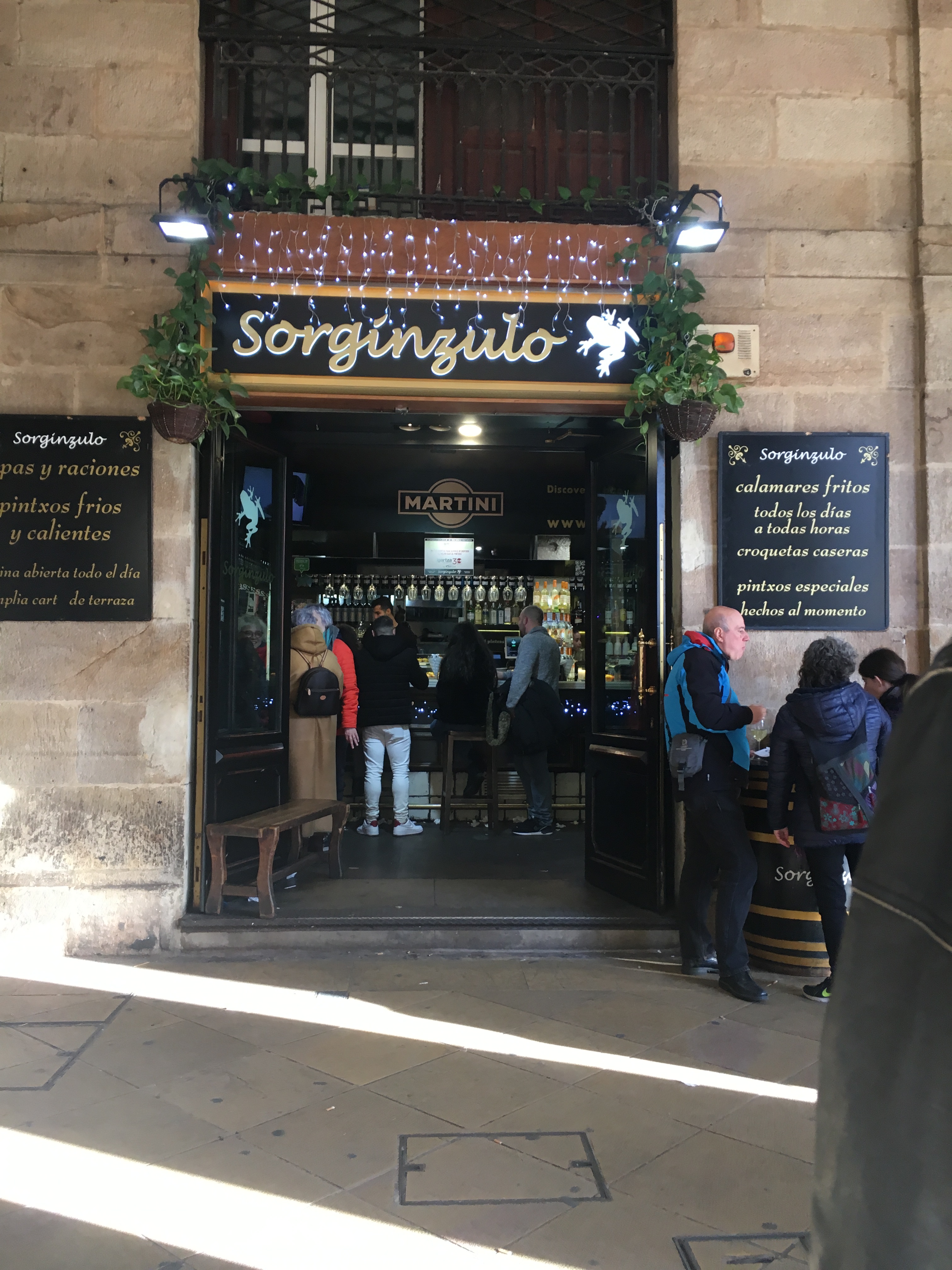 Desde 1979 essa zona é toda peatonal e reúne dezenas de lojas, restaurantes e bares de pintxos, a comida típica por excelência do País Vasco que consiste em uma fatia de pao, com uma porçao em cima e atravessada por um palito de madeira – um pintxo.