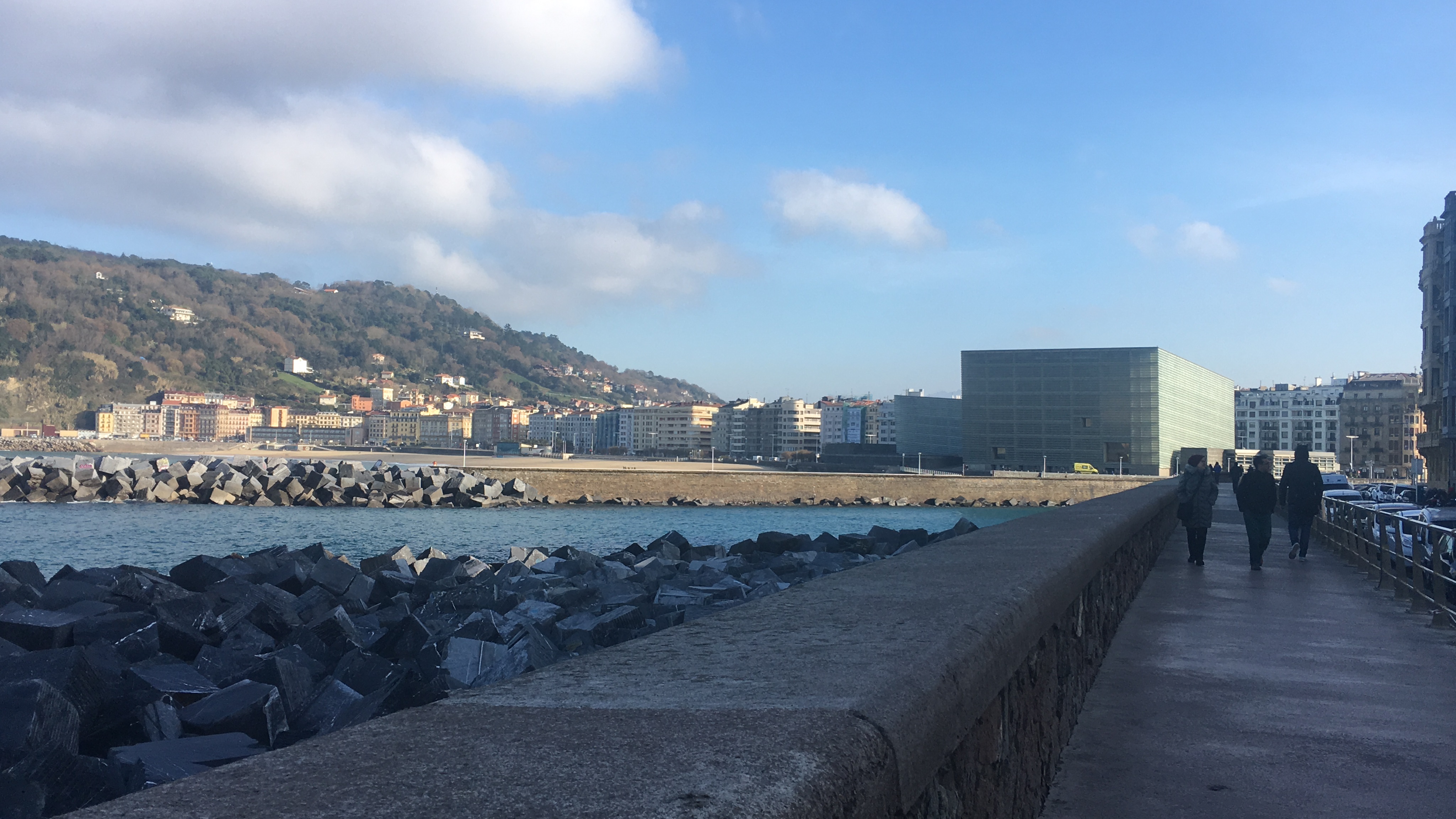 Ao chegar á cidade, se estiver de carro, a primeira coisa a fazer é colocá-lo no estacionamento, pois San Sebastian foi feita para ser conhecida a pé. Começamos pelo Paseo Nuevo que oferece lindas vistas do Mar Medterrâneo.