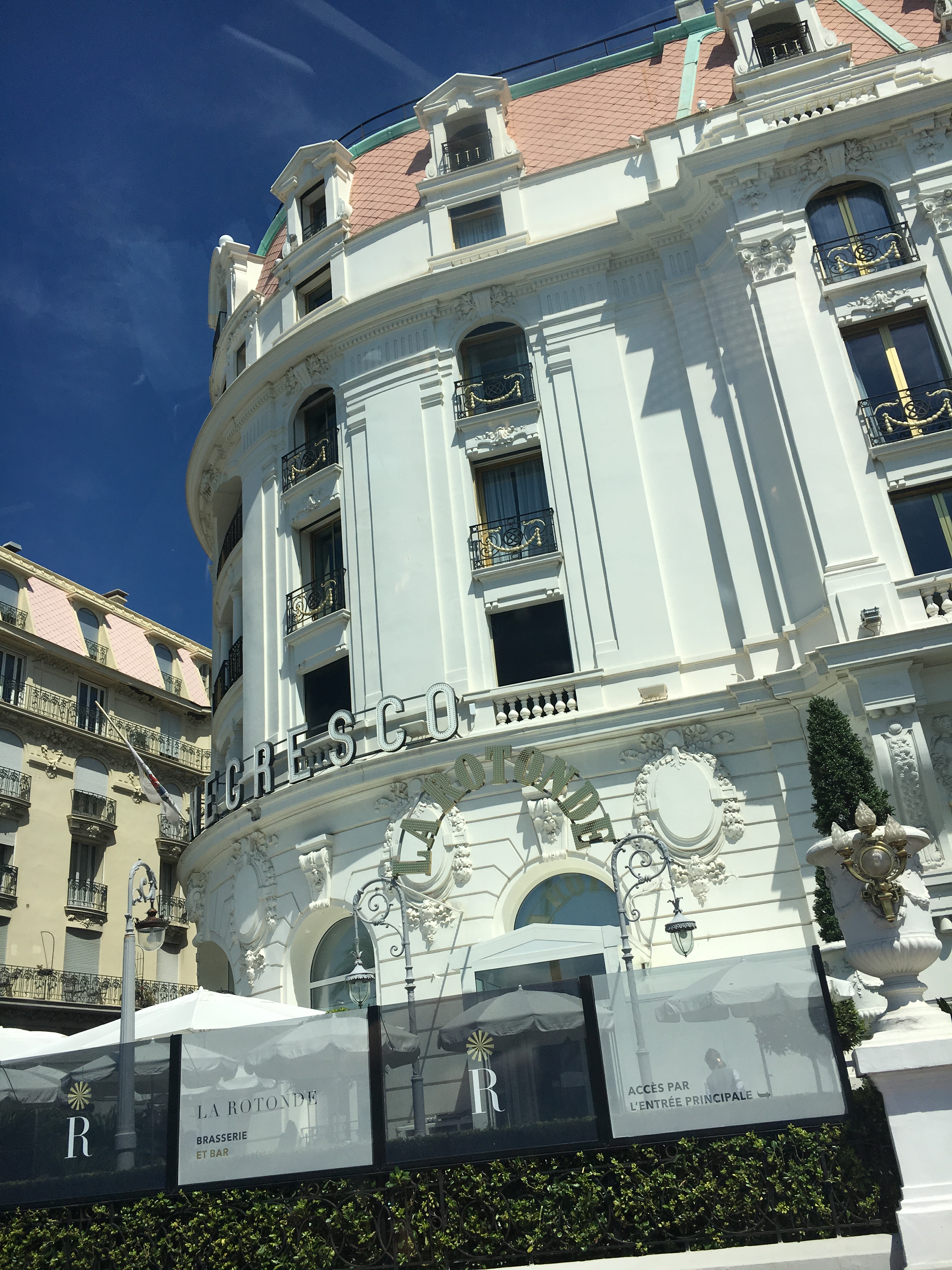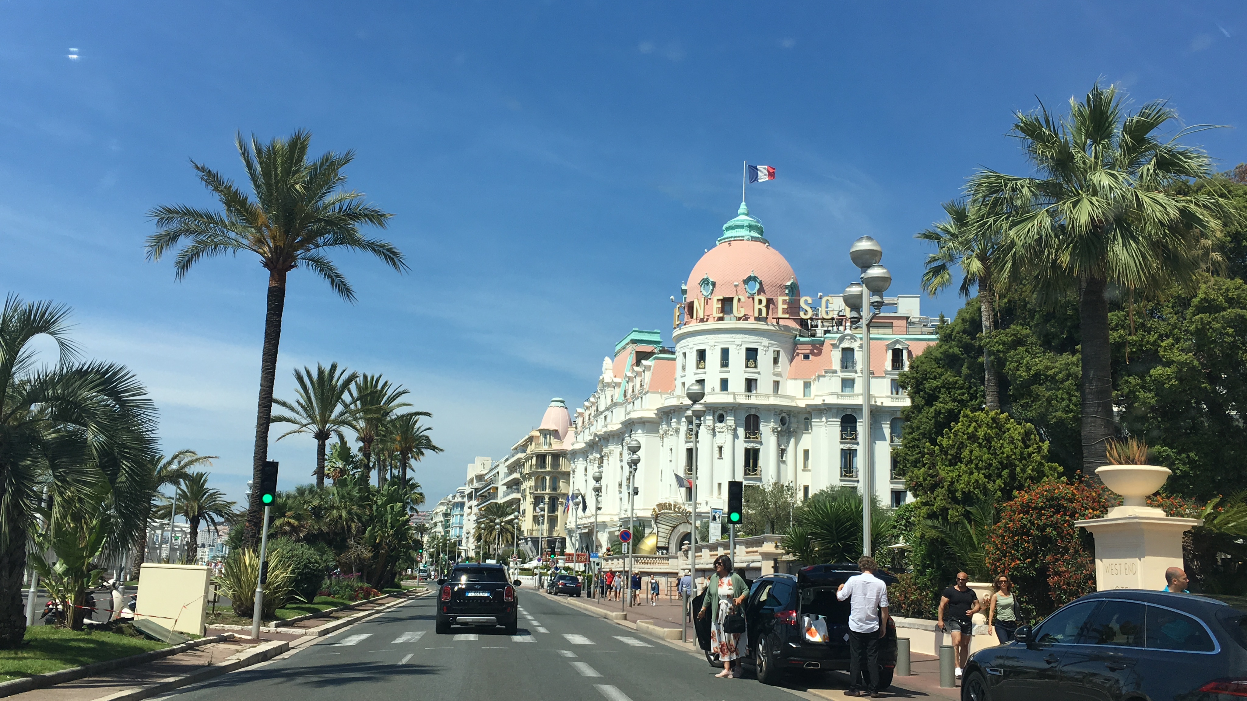La Prom é uma avenida super bonita, a maior parte a beira-mar, e onde por está o Hotel Negresco, o mais elegante e antigo do lugar que ostenta uma cúpula rosada projetada por Gustave Eifel, o mesmo que assina a torre mais famosa do mundo, em Paris. Localizado em frente à Baie des Anges, foi construído por Henri Negresco com o objetivo de atrair a nata da sociedade europeia. Inaugurado em 1913, era puro luxo com um lustre de mais de 16 mil peças de cristais, cedido pelo czar Nicolau II.