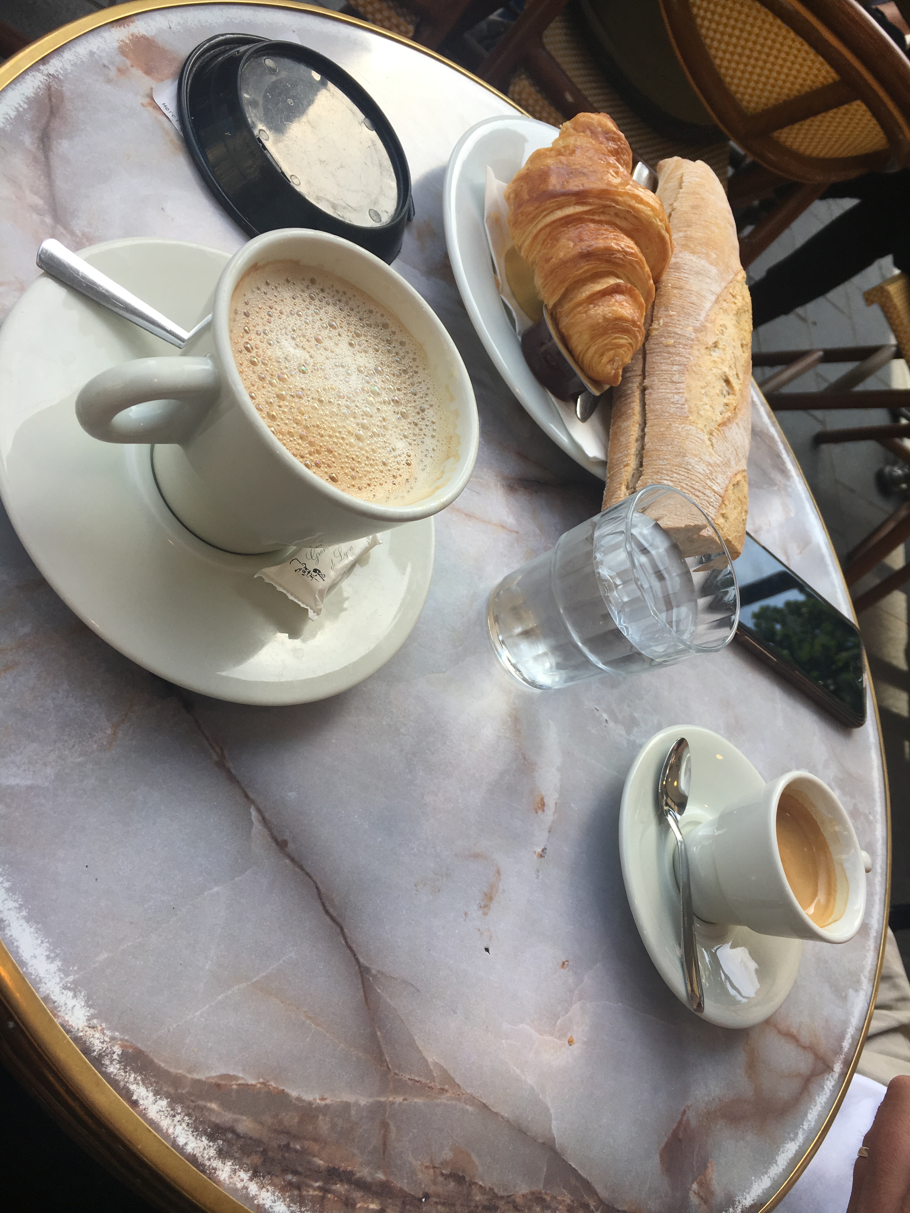 Nós começamos nosso dia em Nice por ali, com um café da manha maravlhoso como só os franceses sabem fazer: café melange, croissant e mesinhas voltadas para o vai e vem do jet set.