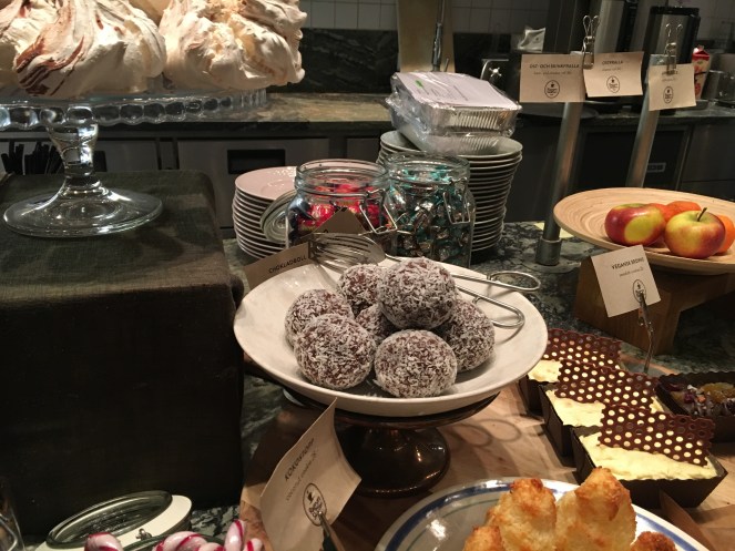 Para a sobremesa a “CHOKLADBOLL” é a opçao mais pedida pelos suecos, uma espécie de brigadeiro com café passada pelo coco ralado tomada sempre em compainha de um cafézinho.