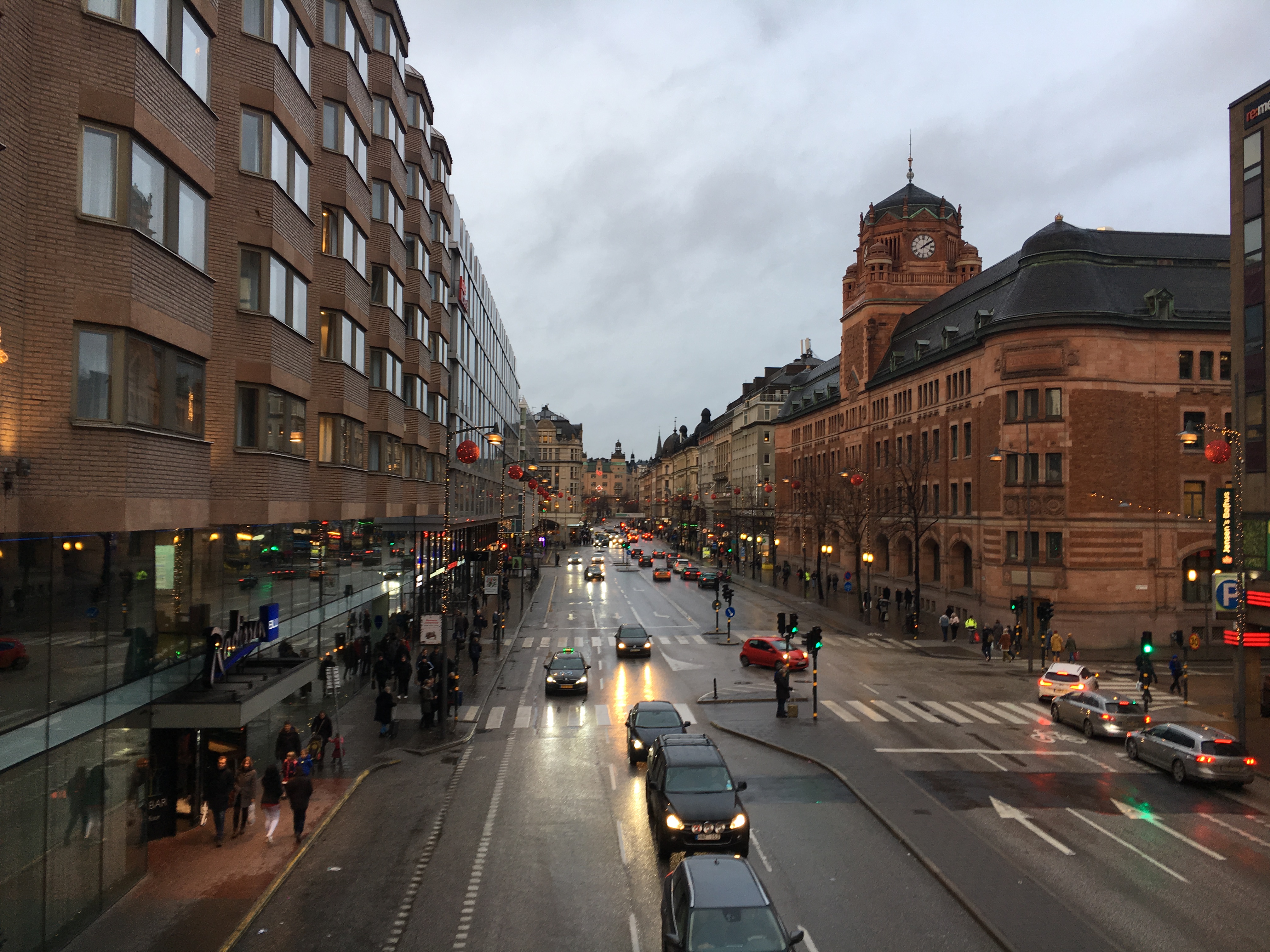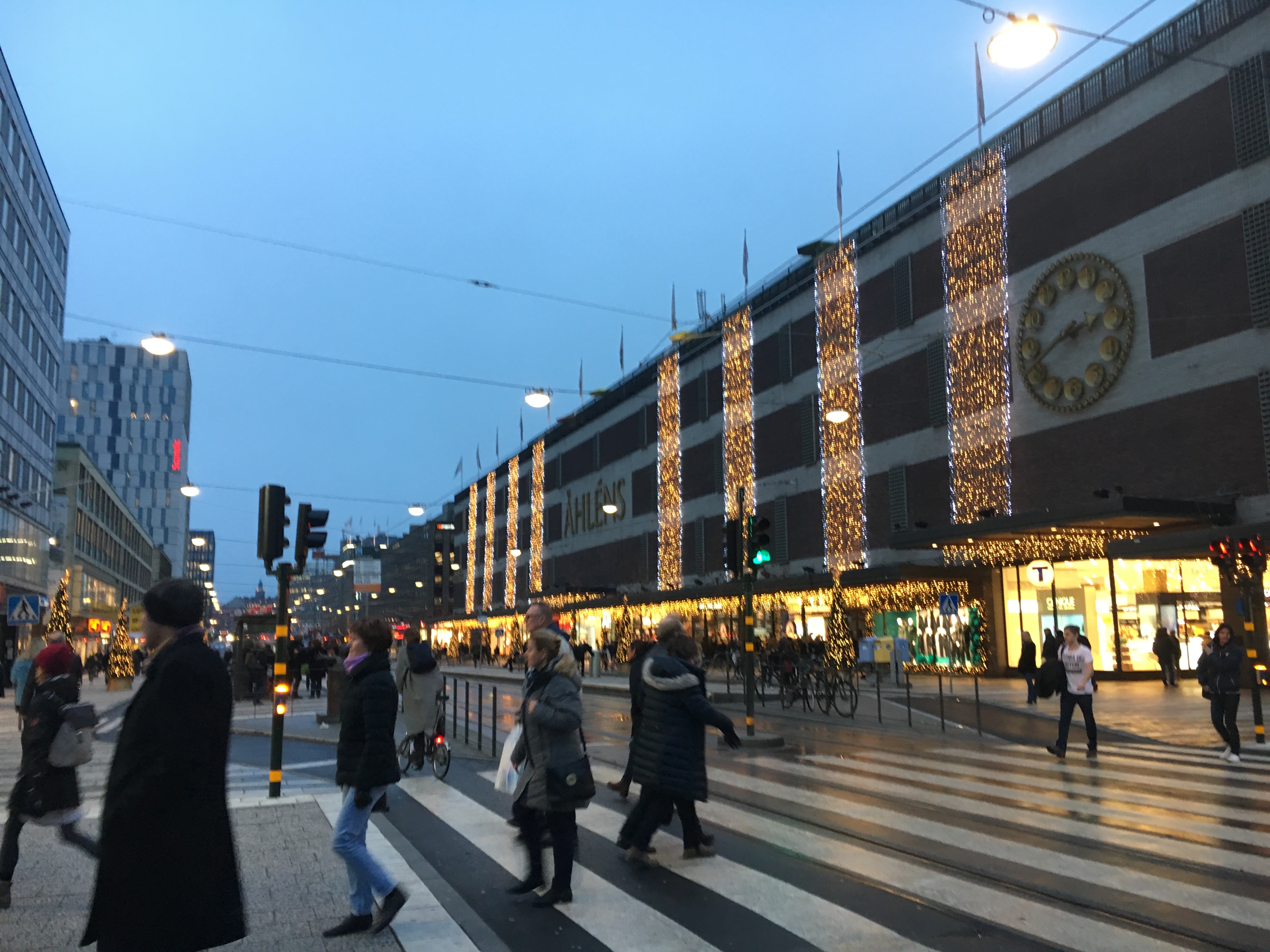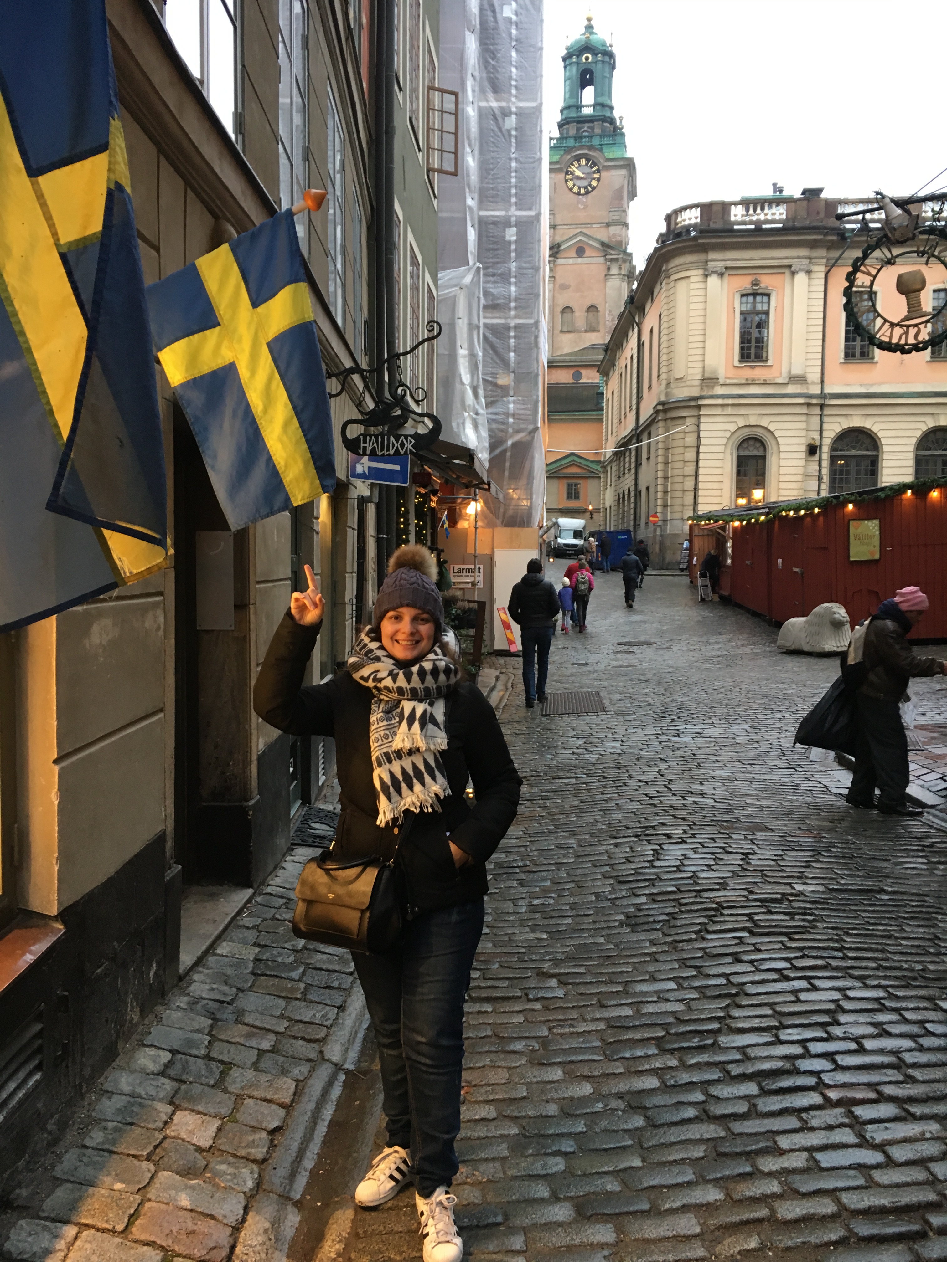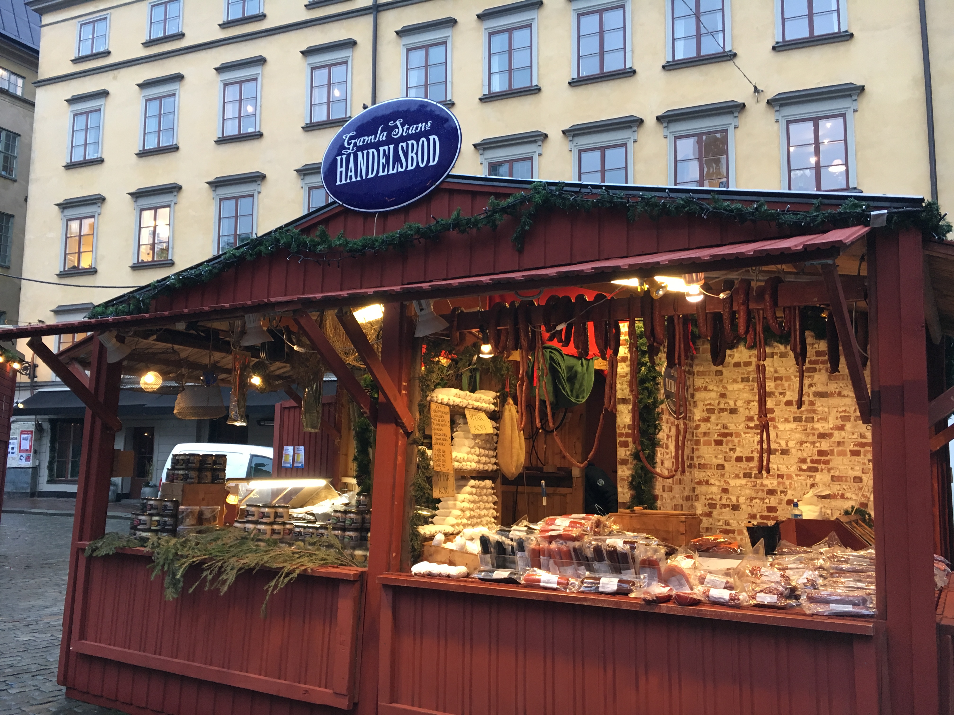 Nessa época de Natal a partir da hora do almoço acontece todos os dia um Mercadinho de Natal super charmoso com barraquinhas de comidas típicas, atraçoes, vinho quente e enfeites de Natal e muito vinho quente, chamado aí de Glögg. Ele é um pouco diferente do nosso e inclusive do alemao por ser bem mais doce e levar amendoas e uvas passas inteiras. A receita leva uma mistura de vinho tinto, vodka, canela, cardamomo (aliás quase tudo leva cardamomo), cravo, casca e laranja e muito açúcar. Ele é servido acompanhado das Pepparkaka, uma fininhas bolachinhas de gengibre que você verá por lá por todas partes. Esse biscoito é símbolo nacional da Suécia e tem até seu dia oficial, 9 de Dezembro!