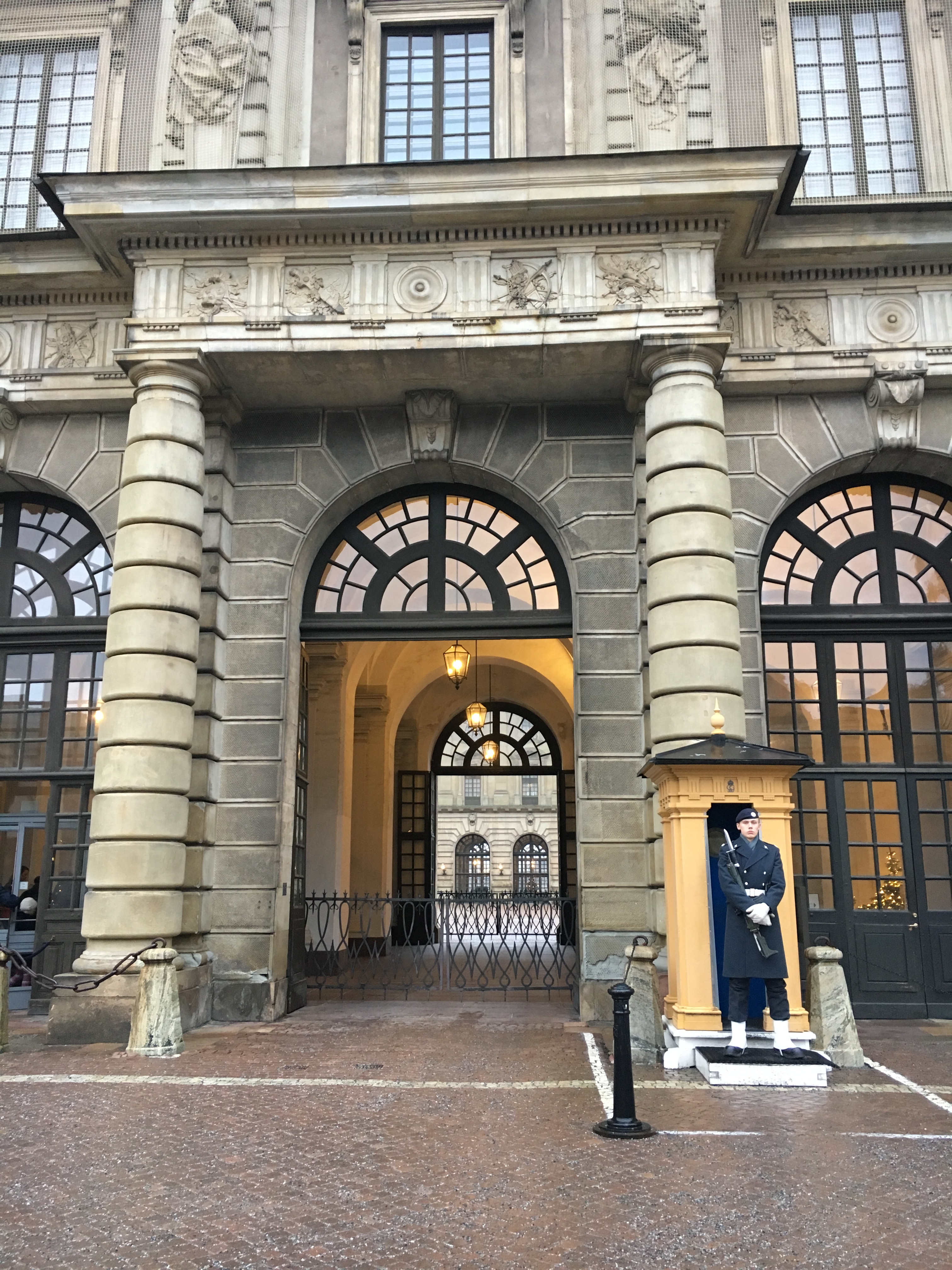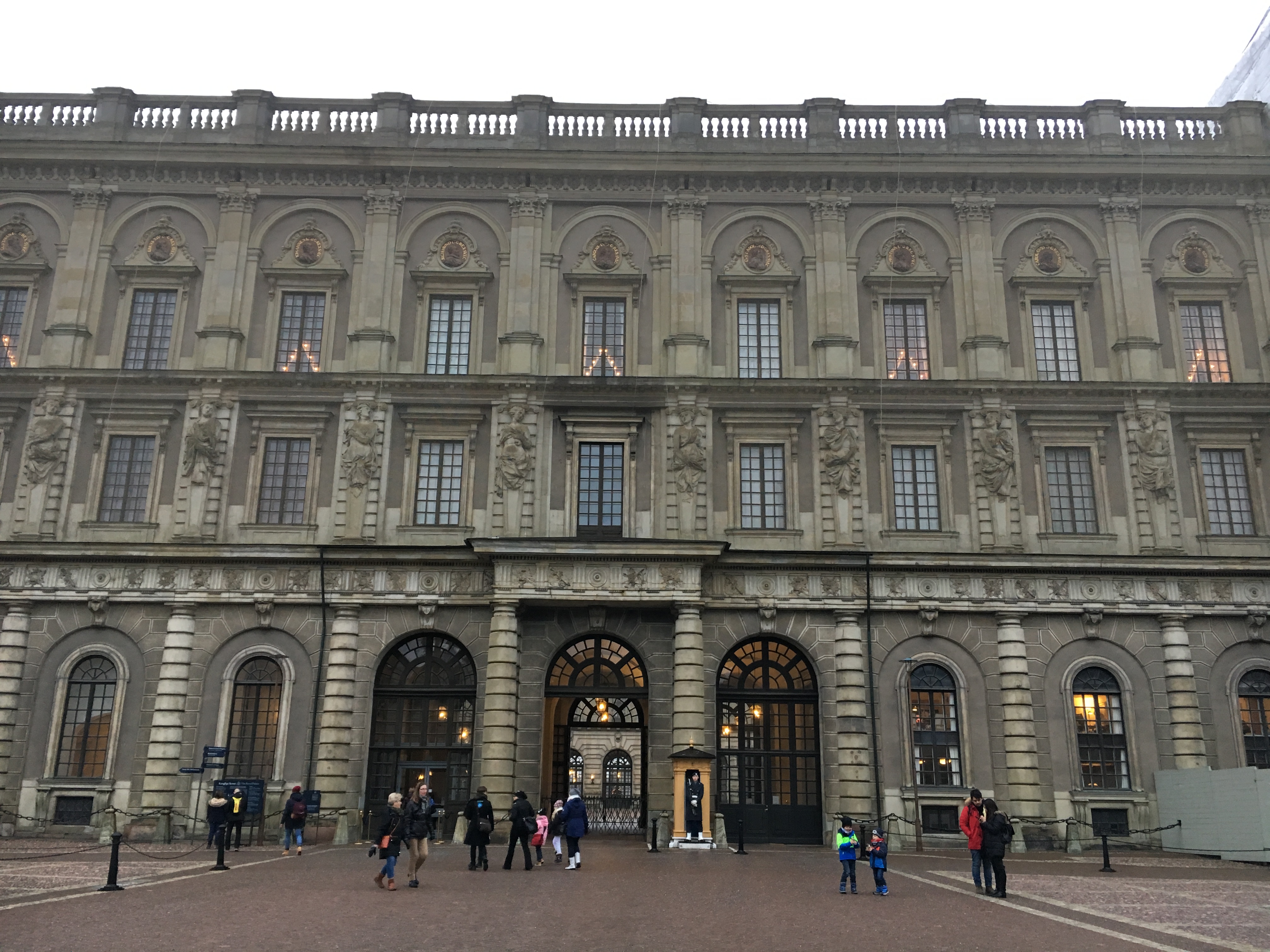 Aí Também acontece aí a troca da guarda que demos a sorte de chegar justo no momento certo. O Palacio Real de Estocolmo tem 605 quartos e é o mais grande do mundo ainda utilizado por um rei, e sem esquecer que a rainha da Suécia é brasileira! Dentro do Palácio além das salas habituais de visita há também três museus com relíquias suecas.
