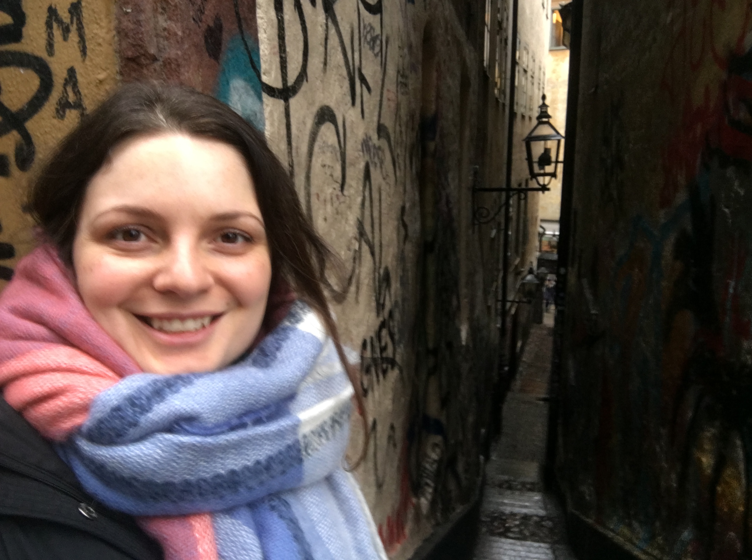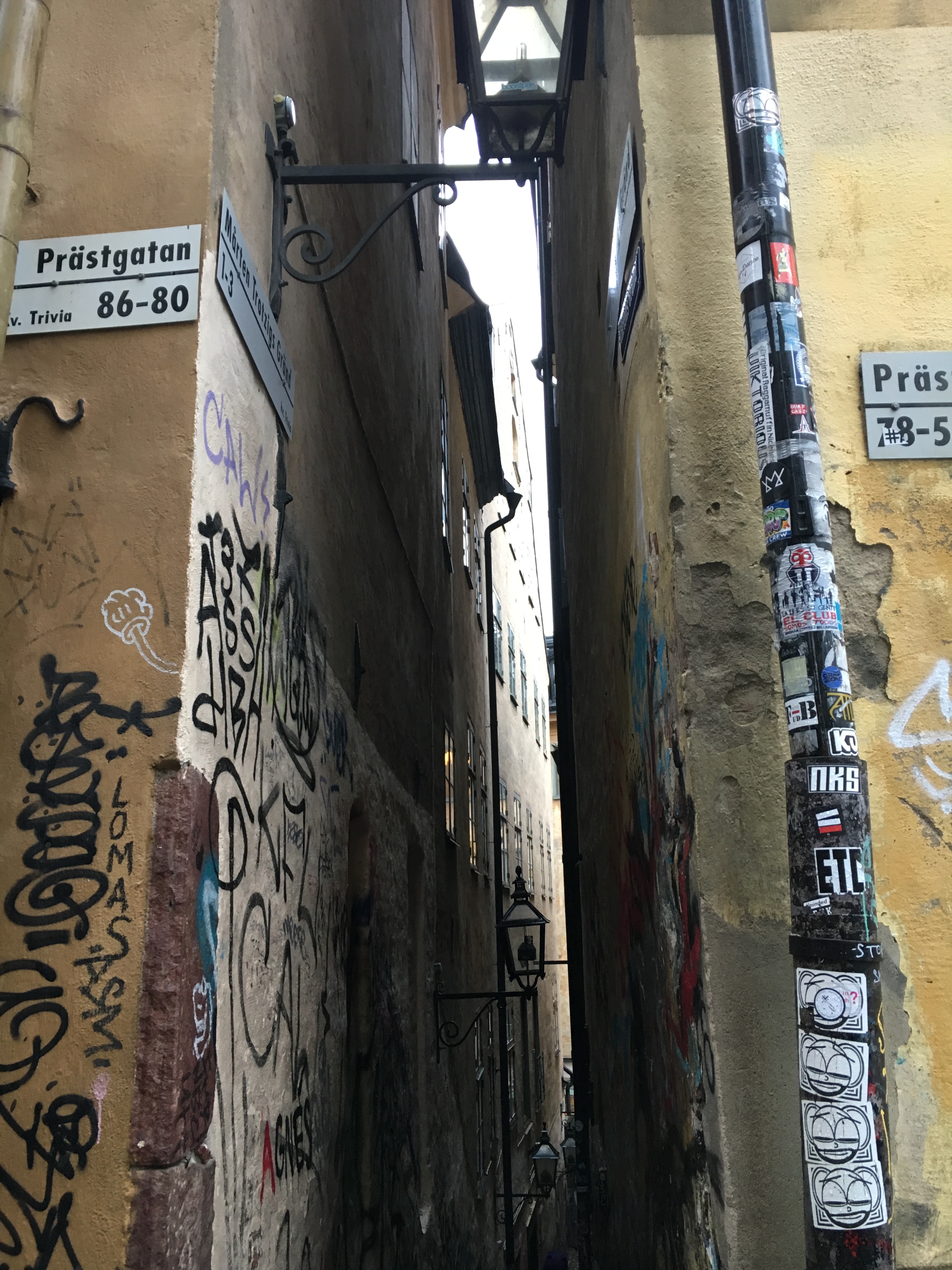 Dalí um pouco mais para baixo fica a rua Marten Trotzig, a rua mais estreita da cidade com apenas 90 cm de largura. Ela leva o nome de um alemao cuja casa dominava a rua (nao se esqueça que ali era o bairro alemao da cidade).