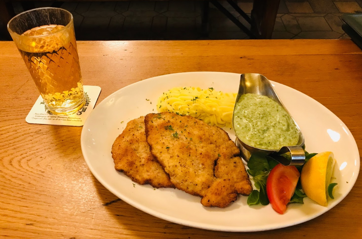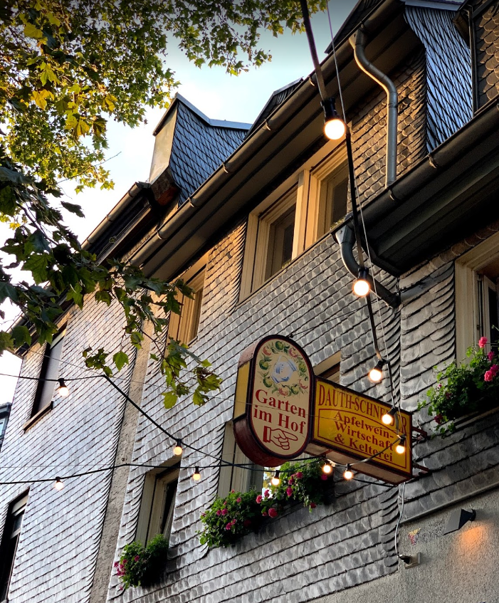 Nesse lugar há muitas tavernas e sidrerias que produzem seu próprio vinho de maça e preparam comida típica da regiao servidos ao ar livre, em uma espécie de Biergarten. Nós escolhemos a Dauth-Schneider que tem mais de 150 anos de história. Tudo começou quando um jardineiro chamado Schneider começou a produzir e vender vinho de maça caseiro e transformou sua sala de estar em uma pequena taverna. Com o passar das geraçoes o restaurante que antes de chamava “Alter Lieber” passou a chamar-se Dauth-Schneider pela uniao de Johana Schneider e Carl Dauth em 1900! Hoje o restaurante tem outro dono e chef: Paul o’Sullivan que toca o local com sua mulher e suas duas filhas.