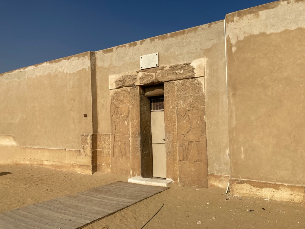 Das 14 portas falsas (que serviam para que a alma pudesse voltar e visitar o corpo e consumir as oferendas) resta 1 entalhada em pedra e pintada para que parecesse de madeira, como eram feitas anteriormente.