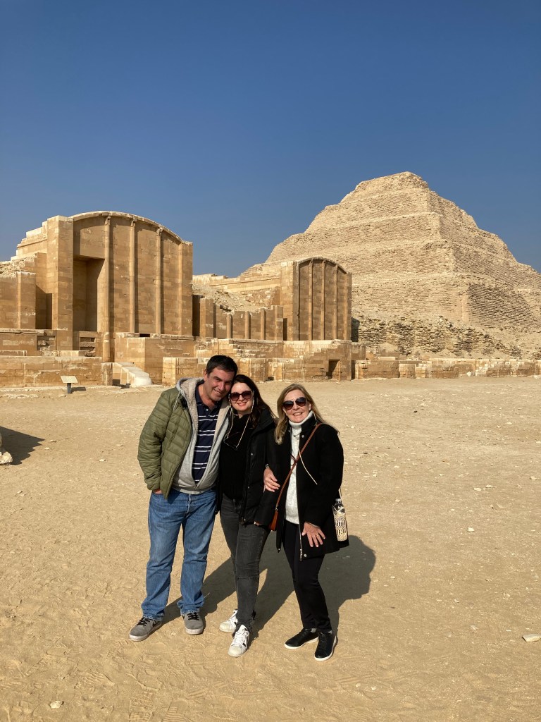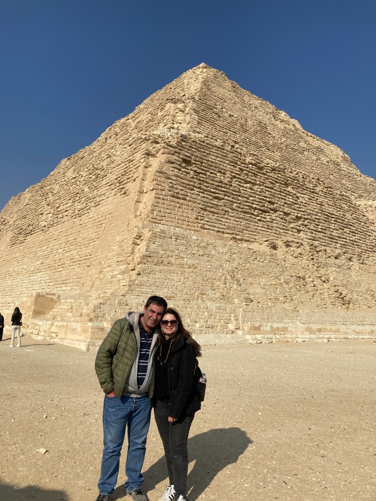 Nosso primeiro dia no Cairo começou cedo. Depois de um café da manhã reforçado com vista às pirâmides de Gizé, saímos em direção ao Vale Necrópole de Saqqara.