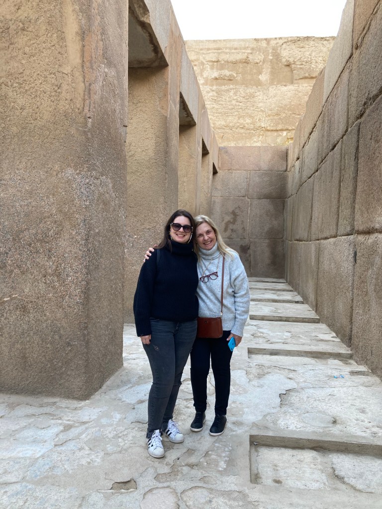 A entrada ao Complexo das pirâmides não inclui a entrada dentro das pirâmides. A grande pirâmide de Queops está sempre aberta e as outras dias menores se revesam. Pagamos 200 libras egípcias para entrar na pirâmide de Queops.