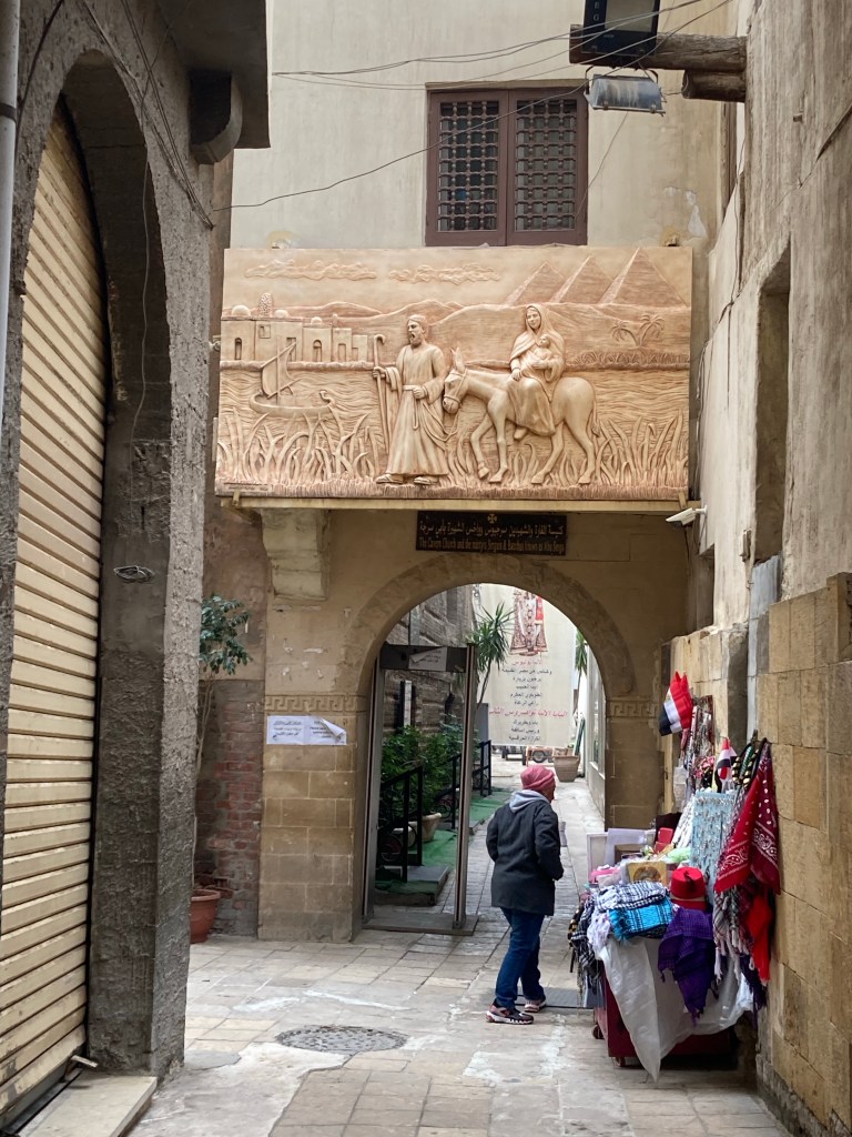 O Cairo Copto abriga o Museu Copto, a Igreja, a Mesquita e a Sinagoga mais antigas do Cairo e o Museu Nacional da Civilização Egipcia. O bairro tem quatro entradas, nós começamos pela entrada Norte que conduz à Igreja de São Jorge.