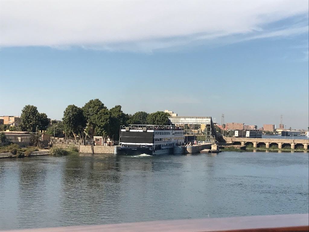 É bem interessante notar como os cruzeiros estacionam na beira do Nilo, um ao lado do outro, sendo necessário cruzar um ou dois navios até chegar no seu!