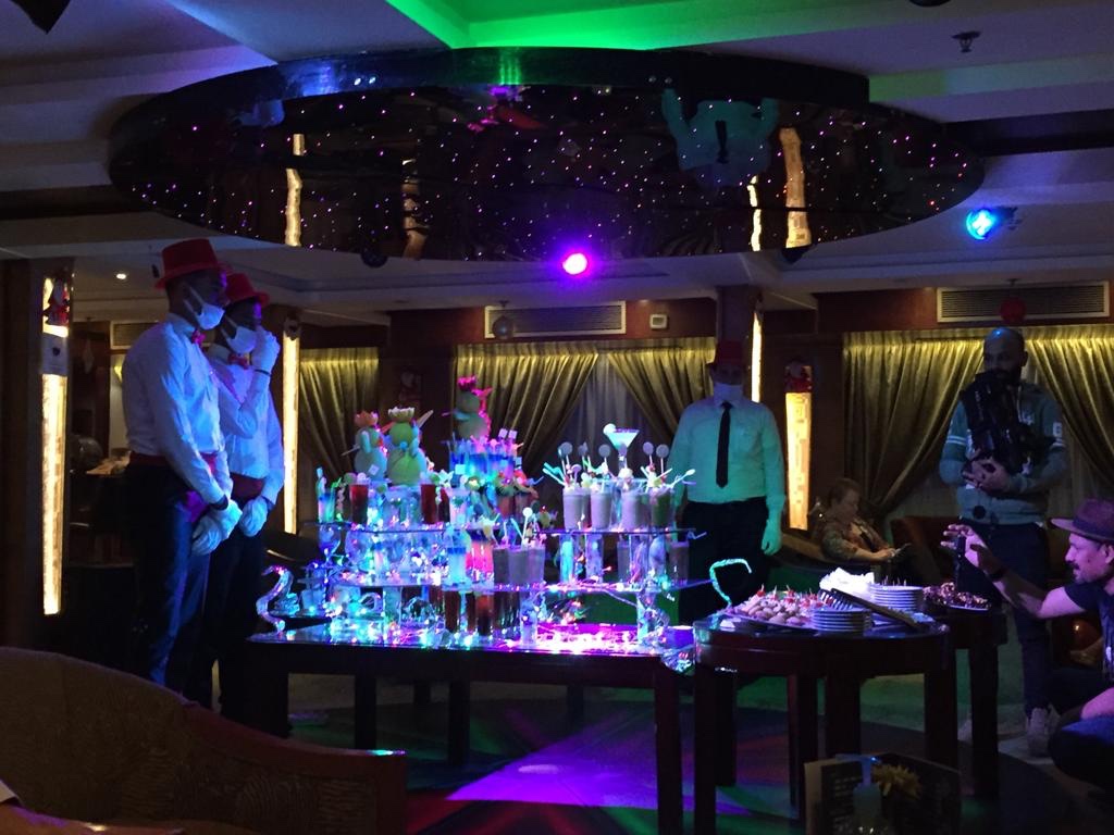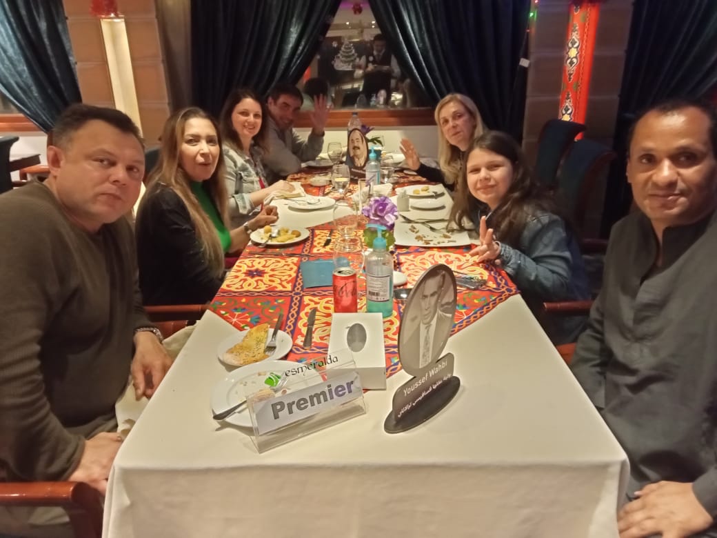 O navio não deixa nada a desejar aos MSC da vida, apesar de ser um pouco mais compacto, mas tem restaurante, sala de estar, deck, piscina, bar e discoteca. Toda noite havia algum tipo de entretenimento: dança do ventre, show de dança, festa árabe, e no nosso caso, jantar de Natal.