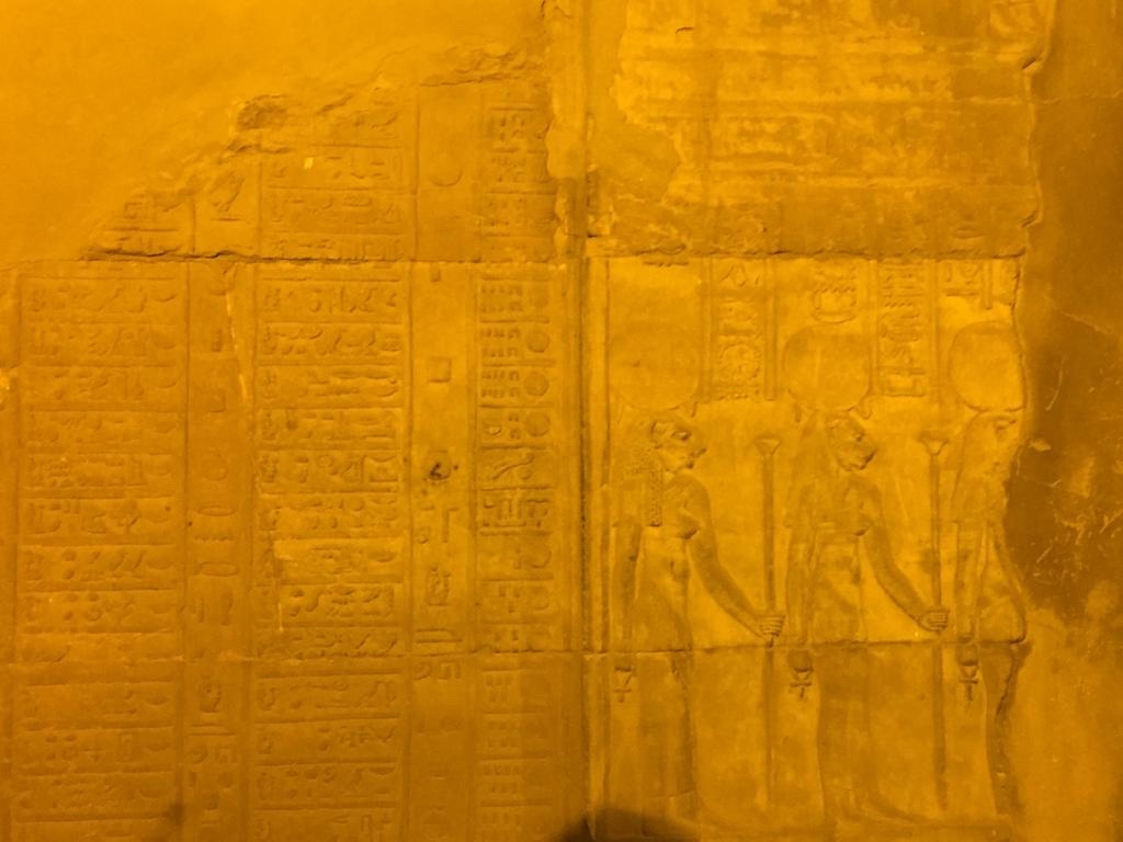 Na parede do corredor externo estão retratados instrumentos cirúrgicos que já eram usados pelos egípcios, inventores do procedimento cirúrgico, e que também eram usados em cerimônias. Ali também se localizava um pequeno hospital da época.