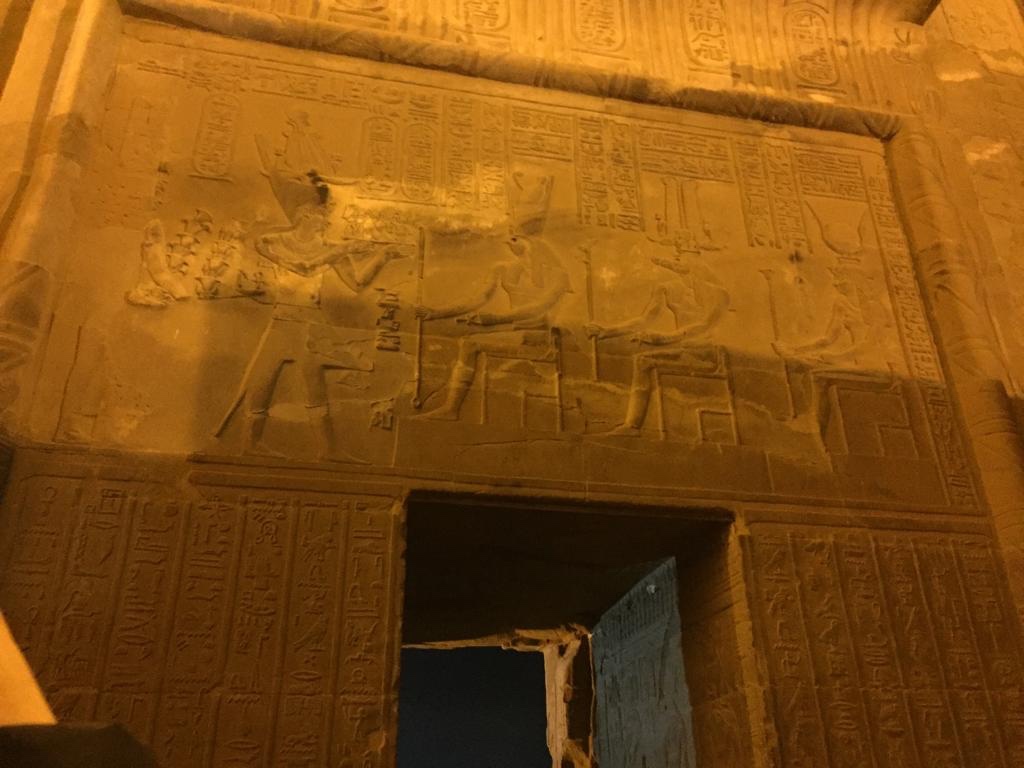 Mais para frente, três ante salas com entradas duplas conduzem aos Santuários de Sobek e Horus, a área mais emblemática do templo.