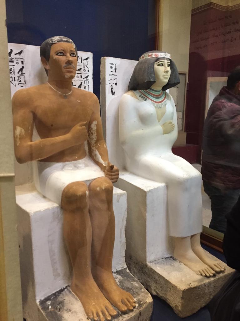As estátuas do príncipe Rahotep e da princesa Nofret da IV Dinastia representa a arte desse período com uma representação bem frontal. O homem está representado com uma cor mais laranja por estar todo o dia no sol e a mulher com uma cor mais pálida. Os olhos são vívidos pela incrustração de cristal e cobre.