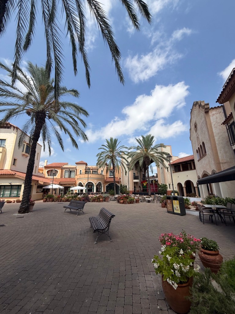 Cada hotel tem decoração imersiva, piscinas, jardins e restaurantes que combinam com o estilo do parque. Você realmente sente que está em um universo paralelo — e isso estende a experiência mesmo fora das atrações. Nós escolhemos o Portaventura Hotel porque tinha clima mediterrâneo e recriava suas charmosas vilas.