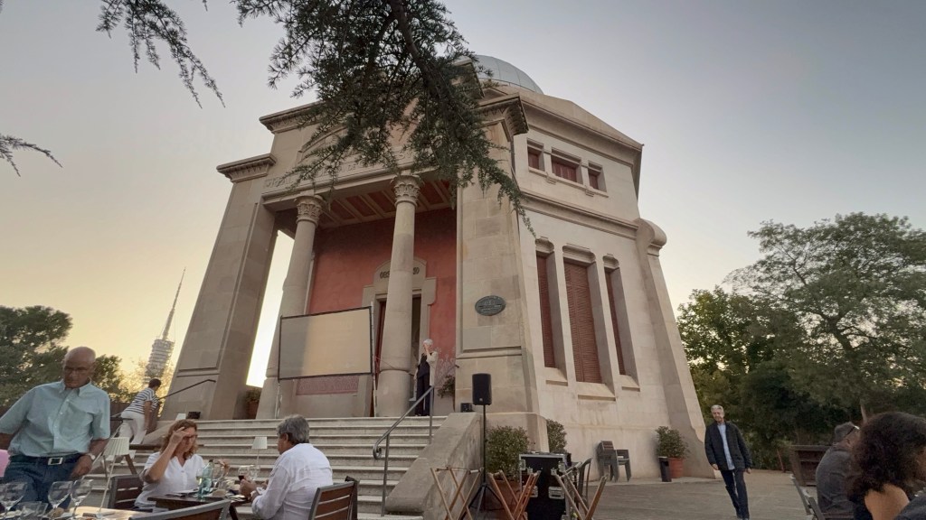 Localizado no alto da serra de Collserola, na Avinguda del Tibidabo, o Observatório foi inaugurado em 1904 e é hoje o quarto mais antigo do mundo ainda em funcionamento. Ao chegar, me impressionou a arquitetura modernista tardia, imponente e branca, projetada por Josep Domènech i Estapà. A sensação é de estar entrando em outro tempo, em outro Barcelona.