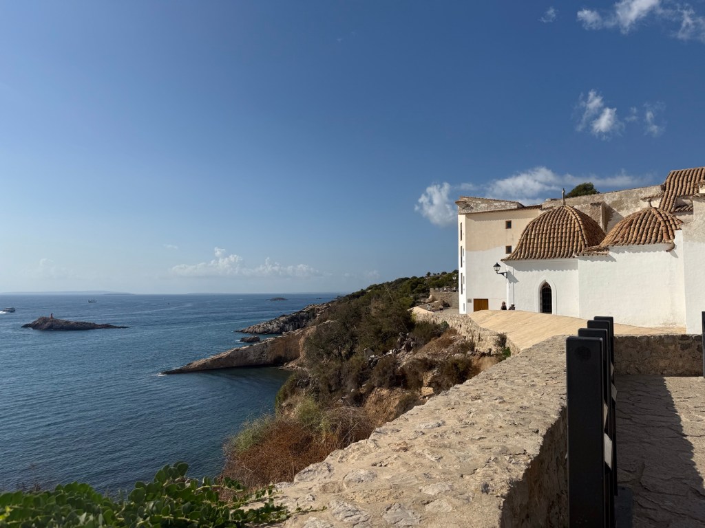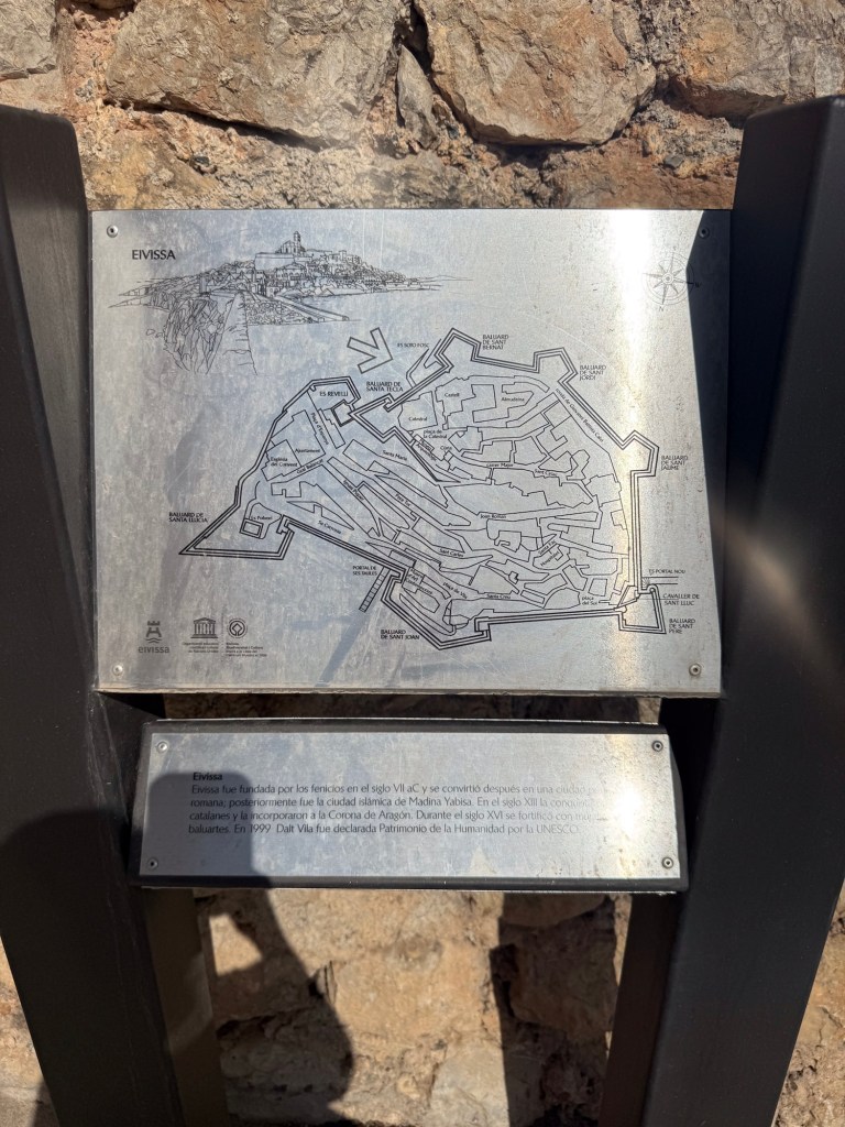 Depois de tomar café no May y Cielo, fantástico, barato e com vista para o mar, começamos o dia explorando o coração histórico de Ibiza: Dalt Vila, a cidade murada que domina o porto. Fundada pelos fenícios no século VII a.C., a cidade passou por mãos romanas, islâmicas e finalmente catalãs, quando foi incorporada à Coroa de Aragão no século XIII. No século XVI, diante da ameaça constante de piratas e invasões, foram erguidas as imponentes muralhas renascentistas, hoje Patrimônio da Humanidade pela UNESCO.