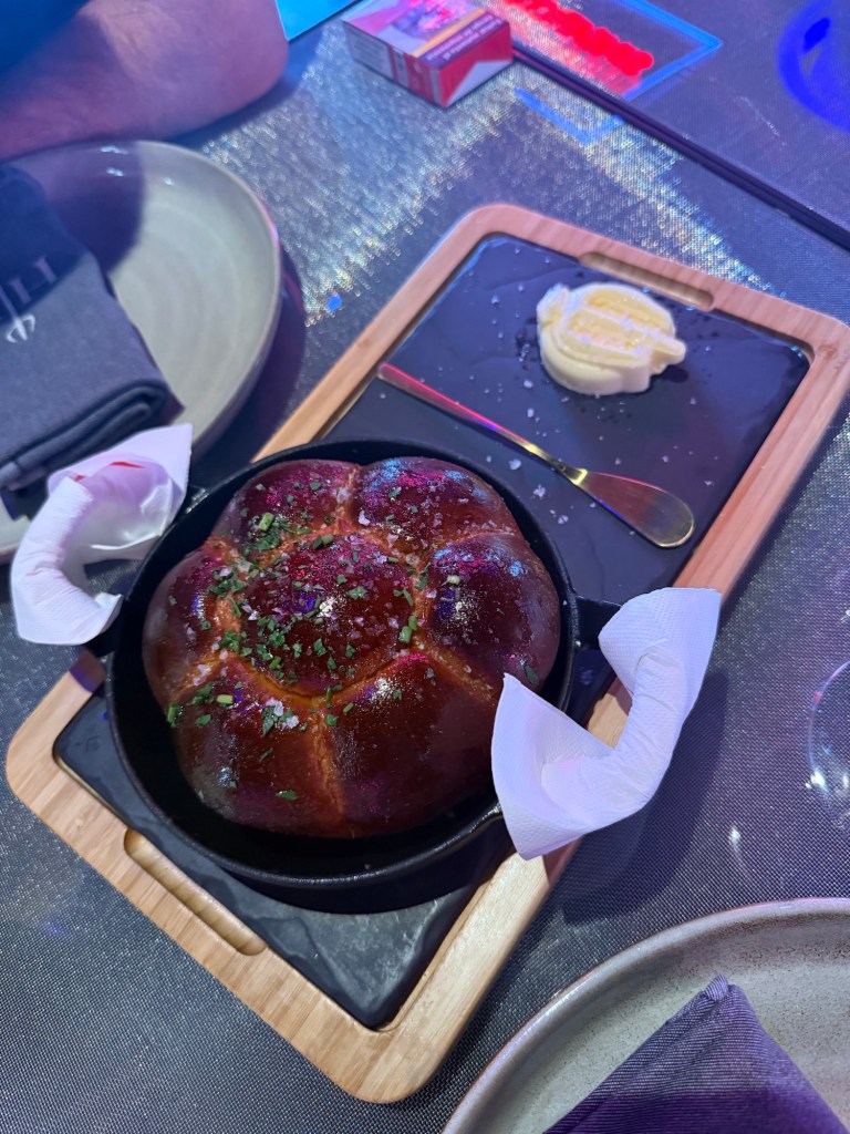O famoso pão da casa e a salada Caesar, considerada uma das estrelas do menu, foram simplesmente os melhores que já provei. E a cada prato que chegava, ficava claro que a proposta do restaurante é entregar não apenas comida, mas uma experiência sensorial completa: sabor, estética e inovação em cada detalhe.