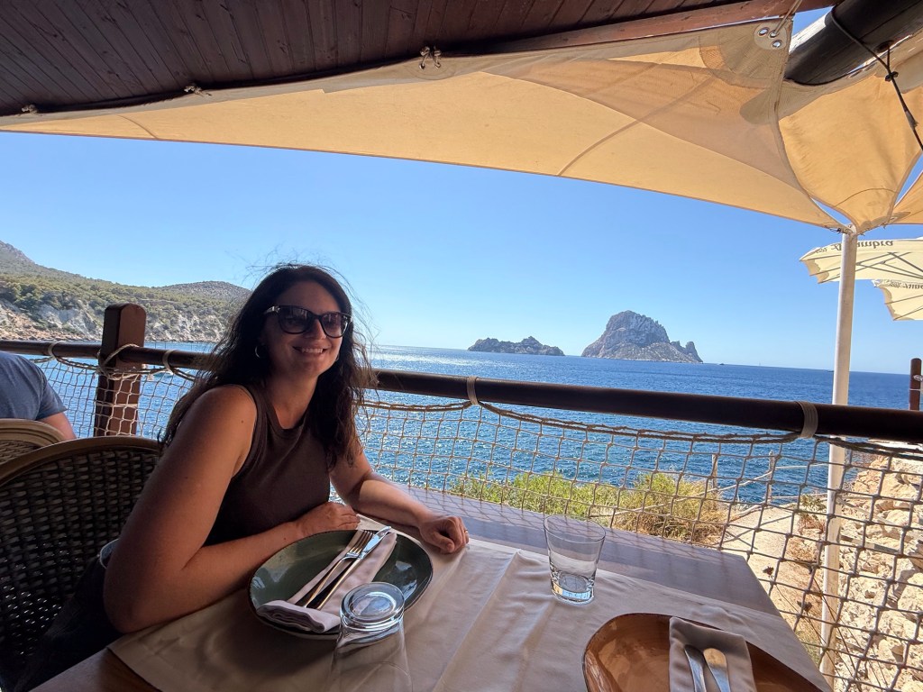 Foi preciso usar o aplicativo Taxi Click (o único que realmente funciona na ilha), mas quando há alta demanda, ele trava e pode ser complicado conseguir transporte. Ainda assim, o cenário e a comida valeu cada minuto: almoçar diante de Es Vedrà é uma experiência que fica gravada na memória.