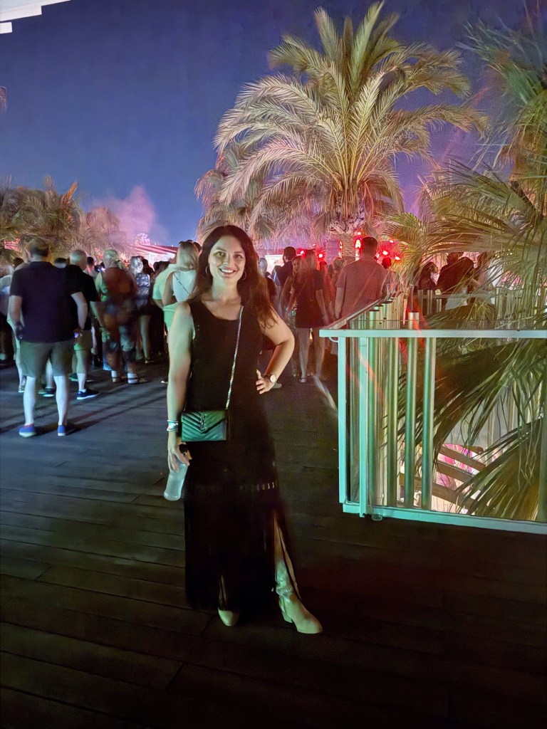 Após o jantar, a simpática Francesca nos acompanhou até o lendário Ushuaïa Ibiza. A entrada VIP nos levou direto à festa de Calvin Harris, com opção de ficar em uma área exclusiva na terraza ou literalmente ao lado do palco.