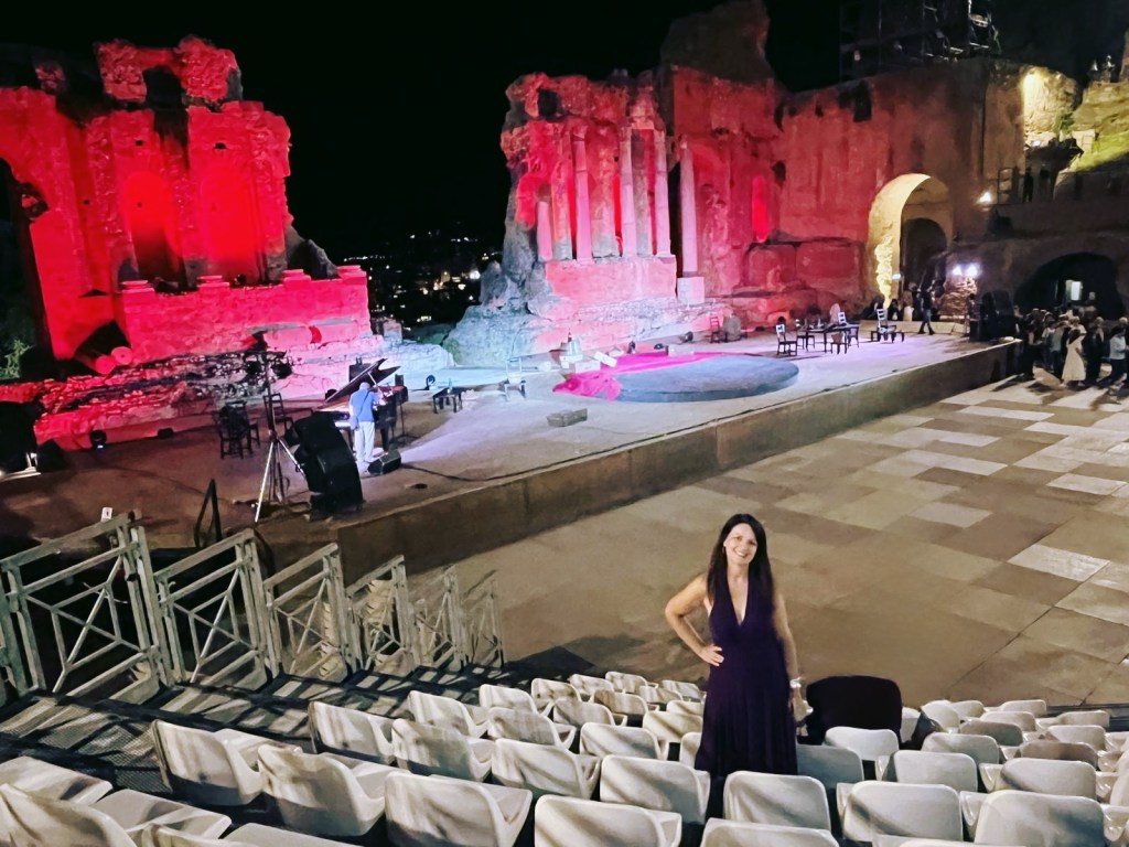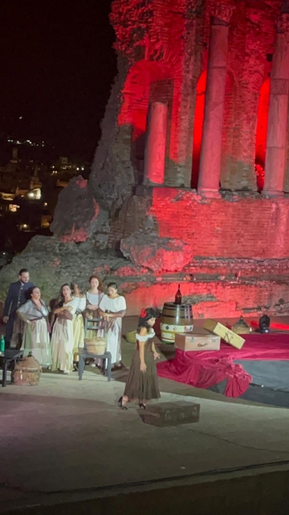 Naquela noite em Taormina, enquanto o Etna se iluminava ao fundo e o mar refletia a lua, que estava crescente e vermelha, a música de Bizet ganhou uma força quase mítica. Era como se a própria Sicília — com seu fogo, seu mistério e sua intensidade — desse voz a Carmen.