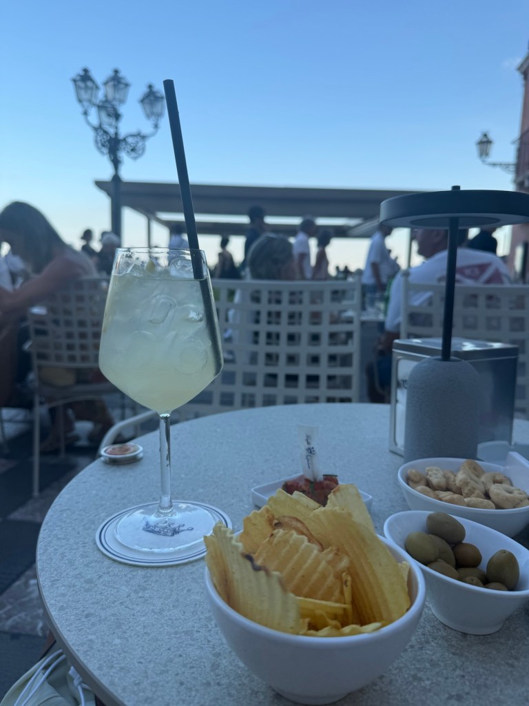 Sentei em um dos cafés da praça, pedi um Limoncello Spritz no Café Wunderbar e fiquei apenas contemplando — parecia um daqueles cenários que misturam sonho e realidade.