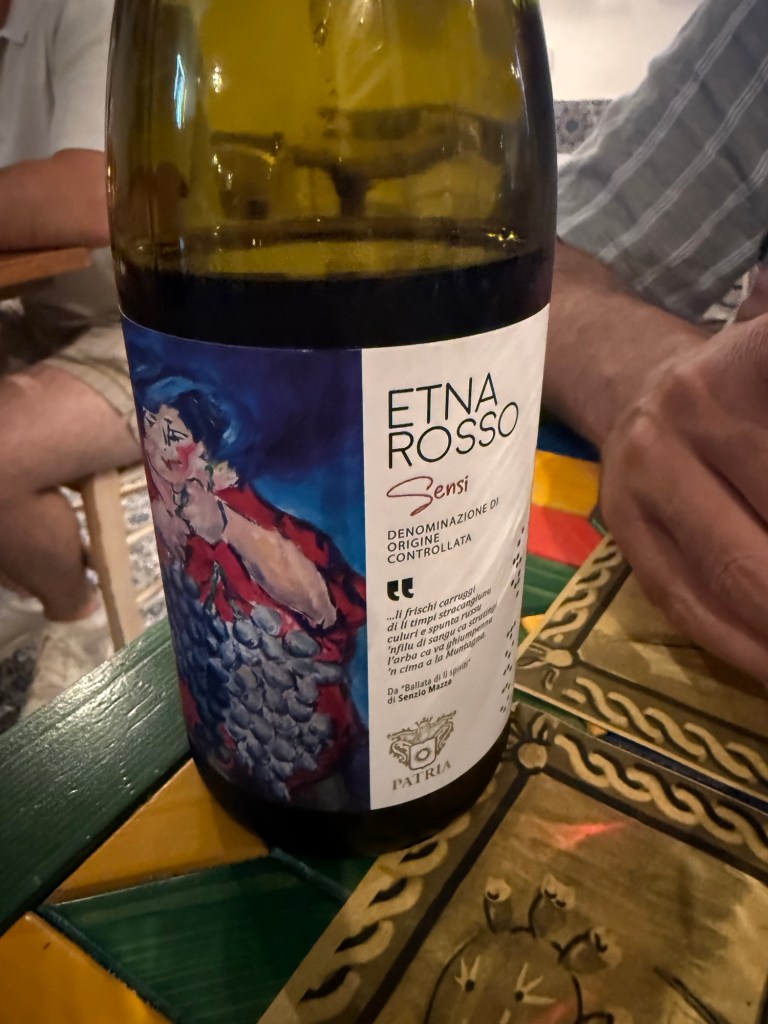 O mesmo acontece com os vinhos, como o Etna Rosso, que carregam notas minerais únicas, e com as frutas cítricas, como as laranjas sanguíneas. Nós provamos o Etna Rosso Sensi e era muito bom.