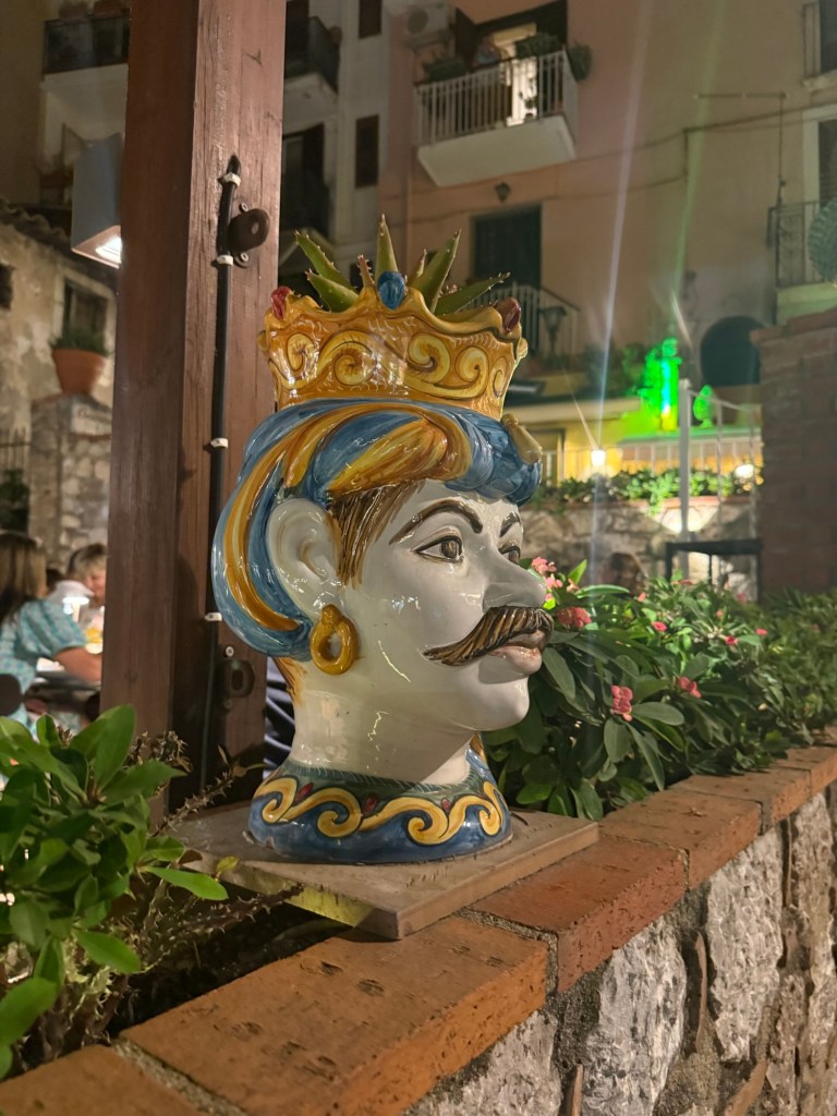 Paseando por Taormina será impossível não notar as diversas “Teste di Moro” ou Cabeças de Mouro usadas como coloridos vasos de majeriões originalmente, e, hoje, de cactos e flores.