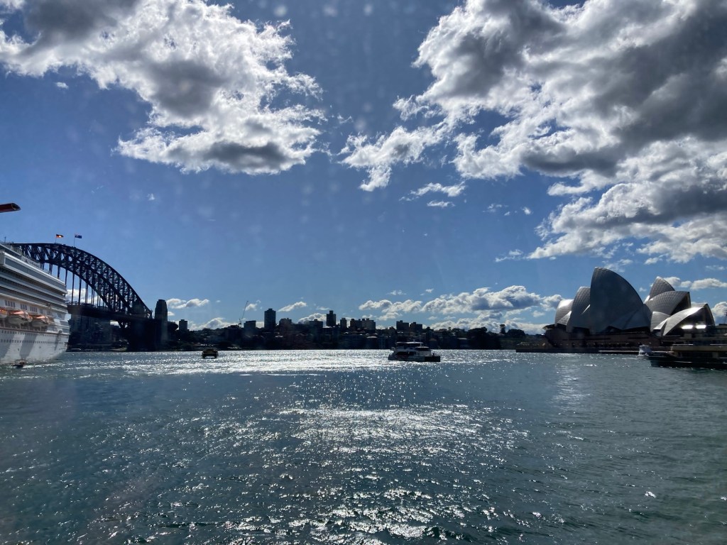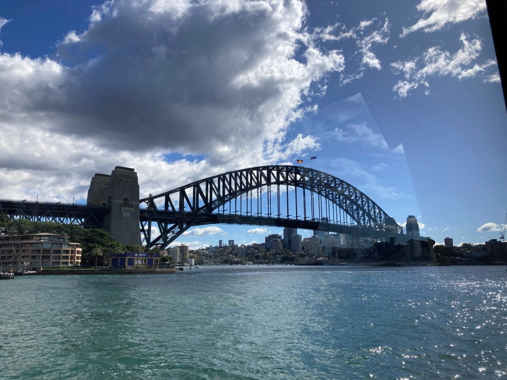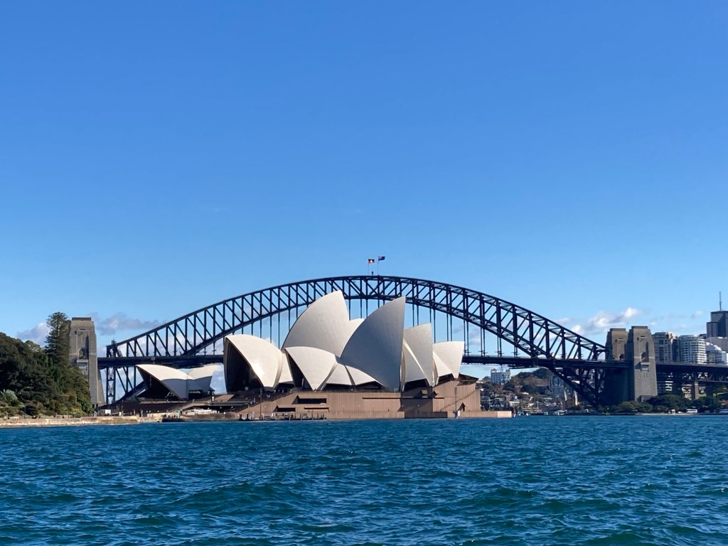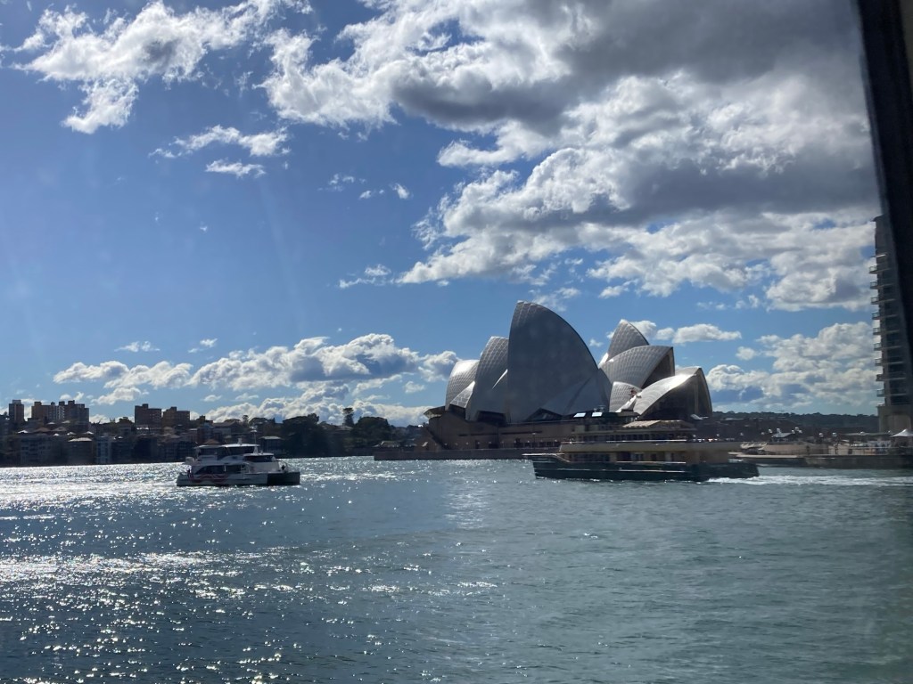 Chegamos em Sidney num fim de manhã ensolarado e segui direto do aeroporto de trem até o Circular Quay — o ponto onde a cidade realmente pulsa. De lá, é impossível não se impressionar: o vai e vem dos ferries, a vista da Sydney Opera House e da imponente Harbour Bridge compondo uma das paisagens urbanas mais icônicas do mundo.
